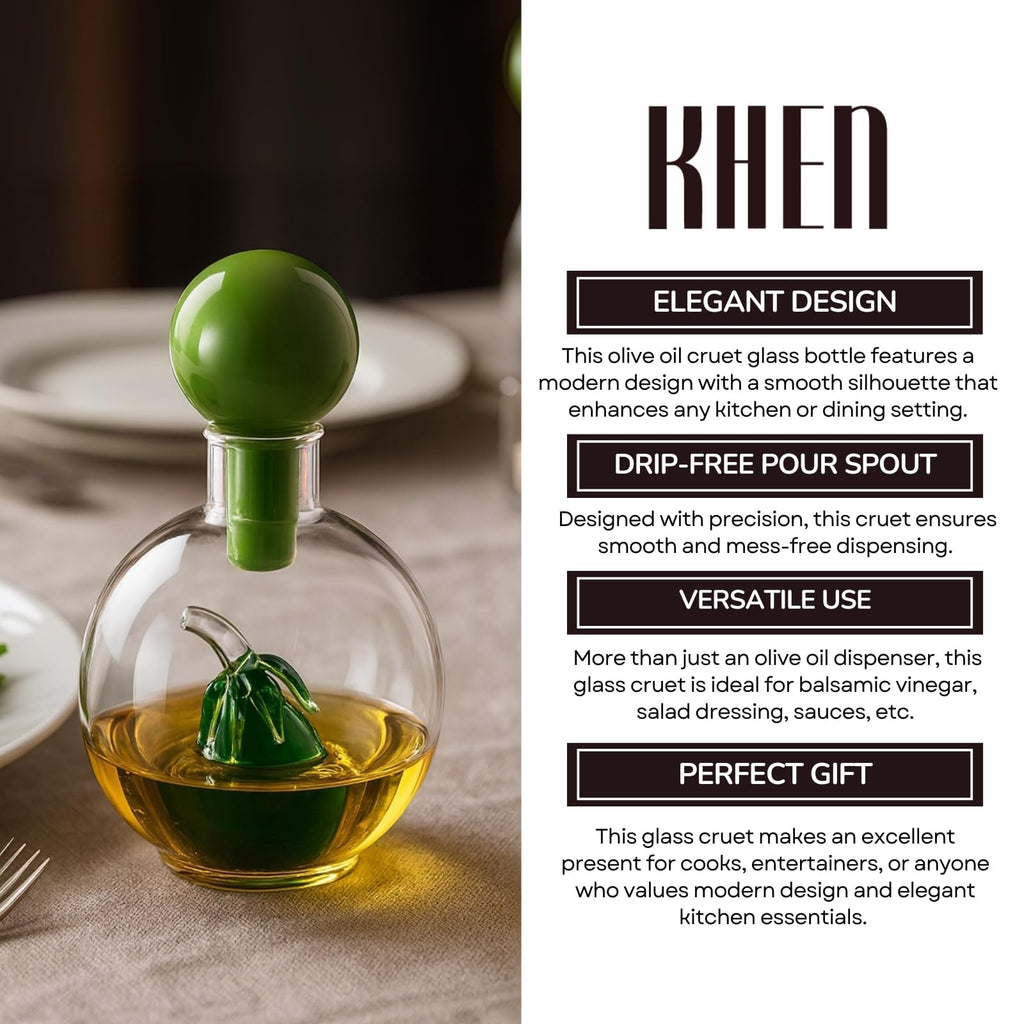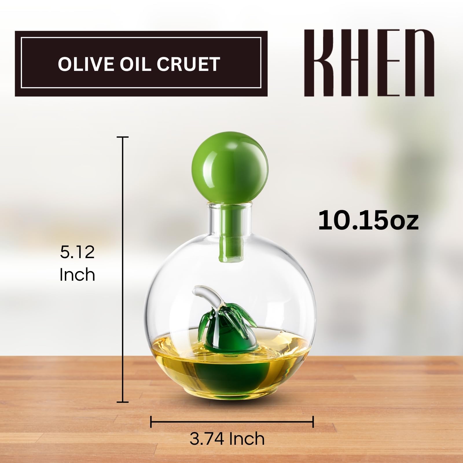 Olive Oil Dispenser Bottle 10oz Glass Cruet with Glass Olive, Drip-Free Pour Spout for Cooking & Salad Dressing, Clear Oils & Vinegar Kitchen, Dining, or Gourmet Gift – Elegant Storage & Serving Jar