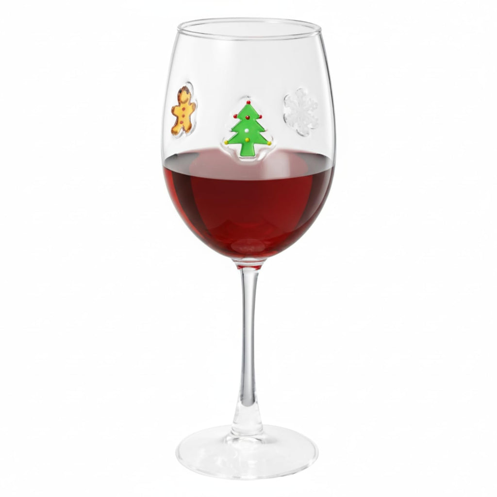 Stemmed Christmas Icon Glass Cups - 14 oz Snowman Gingerbread Man Candy Cane Xmas Tree Stemless Wine Glasses Red Large Wine Icon Juice Glasses Drinking Cups for Holiday Party Supplies & Christmas Gift
