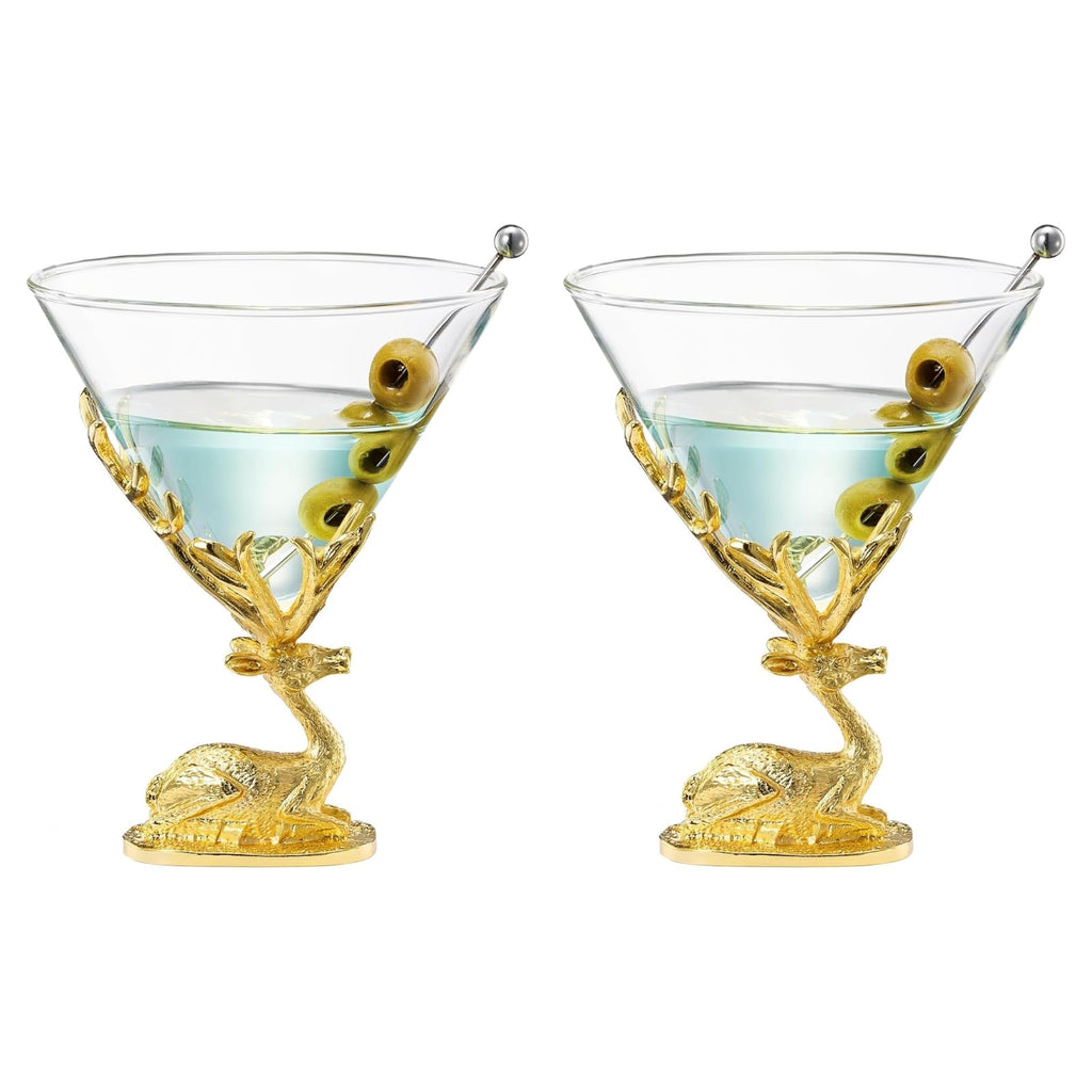 Stag Antler Cocktail Glasses Set of 2 Gold Deer Design Elegant Animal Inspired Barware - Themed Parties Rustic Decor Stag Lover Gifts or Unique Drinking Glasses Perfect for Cocktails and Entertaining