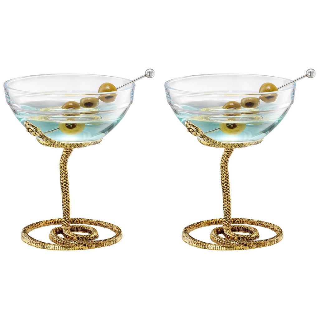 Snake Serpent Cocktail Glasses - 2 Set Gold Design Unique Reptile Inspired Barware - Themed Parties Gothic Décor Snake Lover Gifts or Spooky Drinking Glasses Perfect for Mixed Drinks and Entertaining
