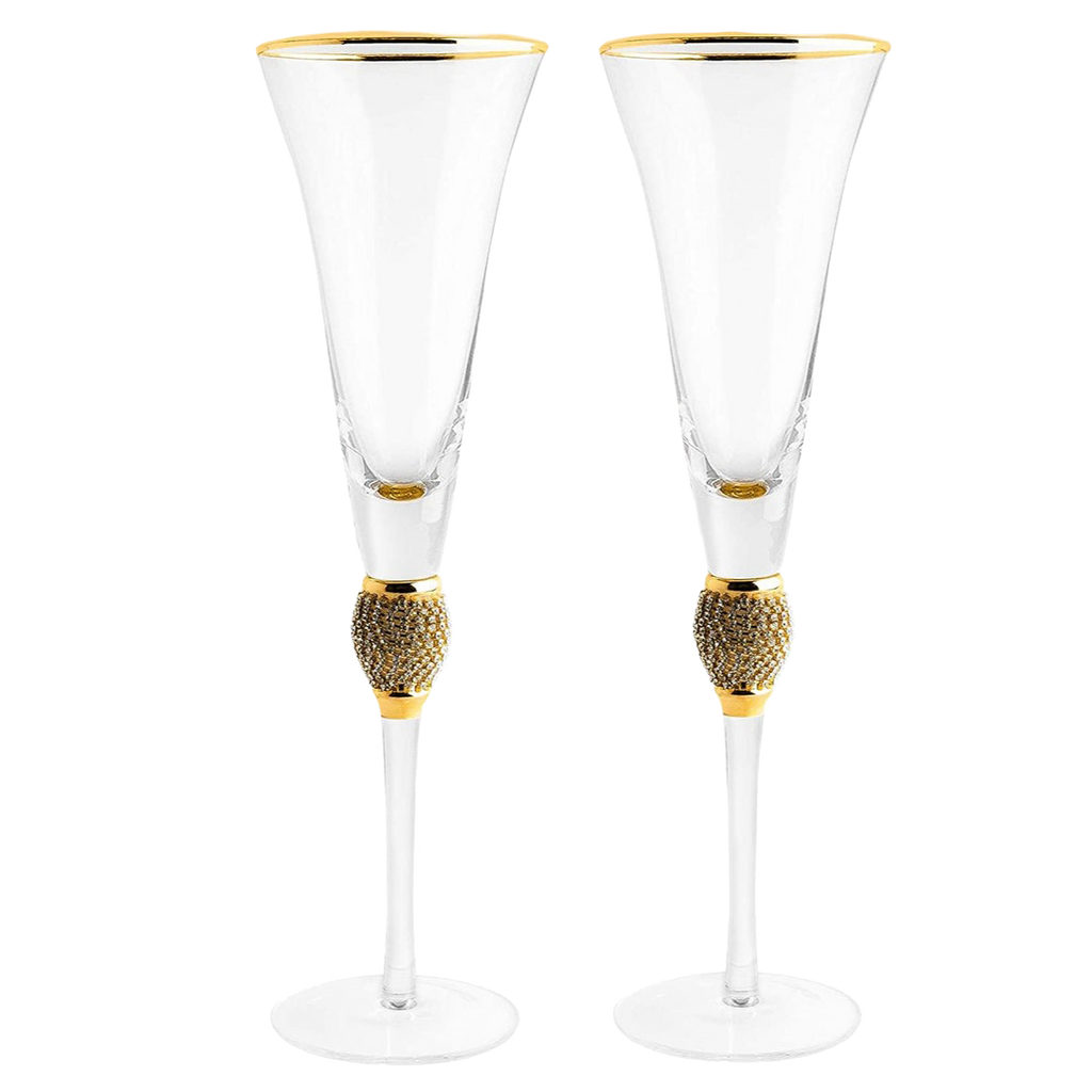 The Wine Savant Diamond Champagne Flutes Set of 2 Glasses, Dimond Rhinestone Studded Long Stem, 7oz, Premium Designed Champagne Glasses for Spirits and Wine, Gift Boxed