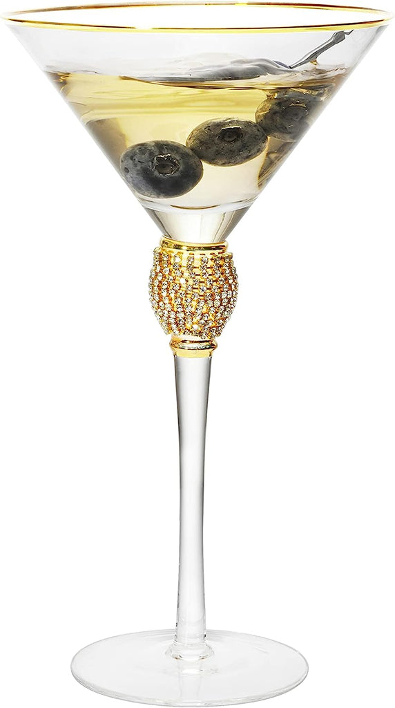 - HEIRLOOM QUALITY WORKS OF ART: The shimmering glasses featuring graceful curves and are truly fascinating work's of art. Handmade and mouthblown of the highest quality by master artisans. A very special and extravagant way to sip your martini! The striking display is emphasized by the gold rim and ball-like centerpiece with crystals! These glasses have a contemporary and shiny look that is utterly fashionable in any setting.