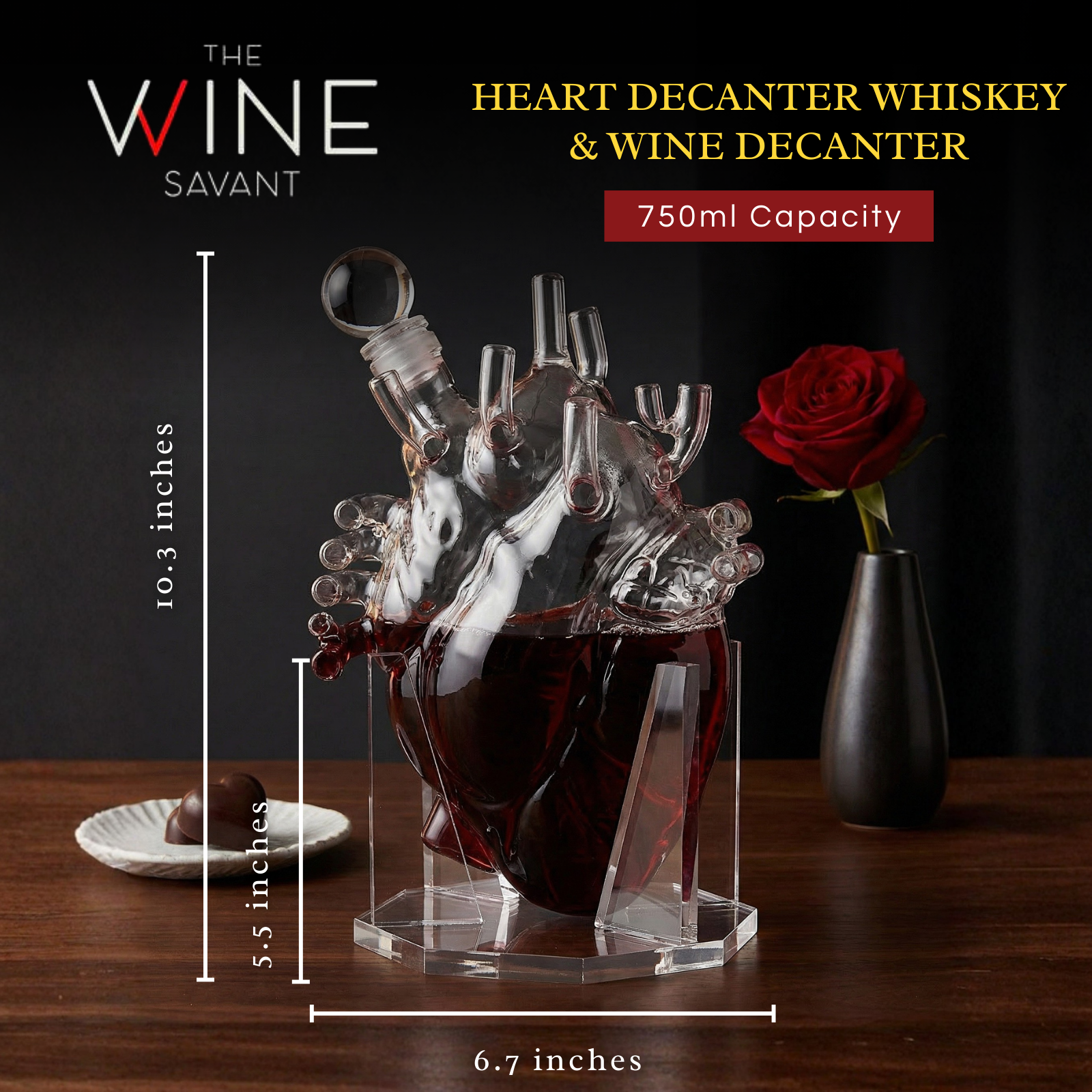 • The Heart Decanter is an exclusive, innovative design that will stand out in your kitchen or bar to showcase your finest spirits. A beautiful, stylish decanter that is the perfect gift for any special occasion. It brings elegance to any dinner party and will impress guests with its unique design. Whether you are looking for that special something or need to spruce up your home with luxurious décor, the Heart Decanter by The Wine Savant is the perfect solution