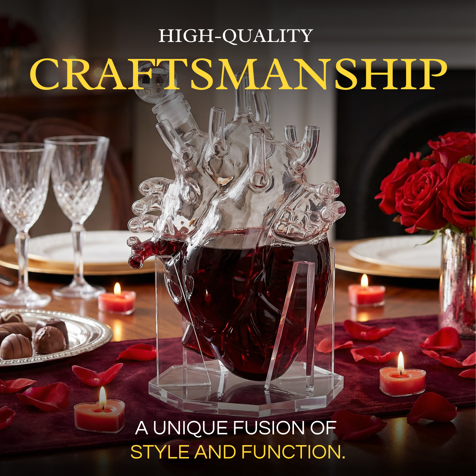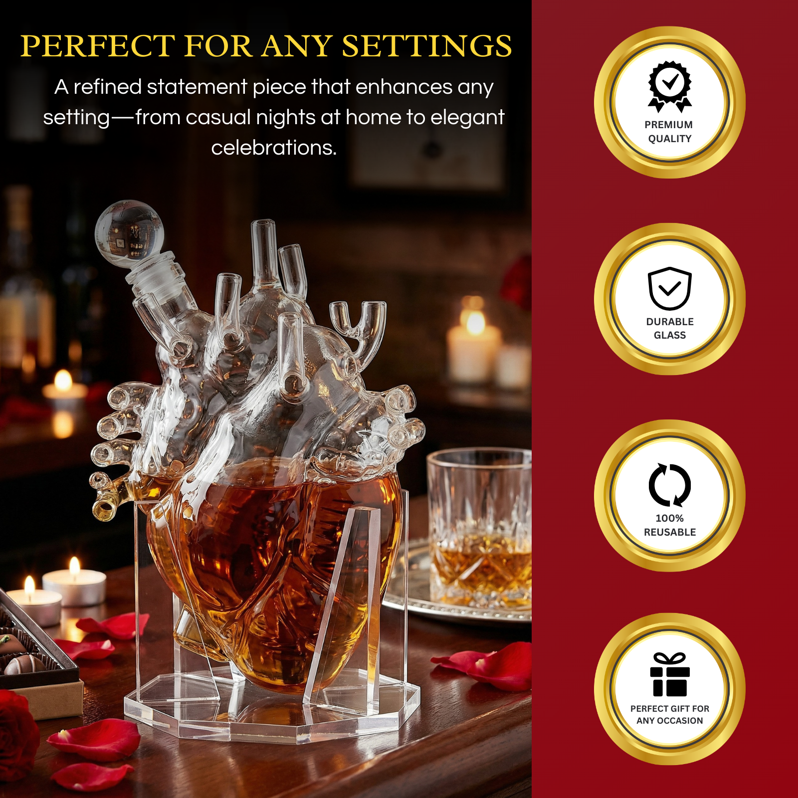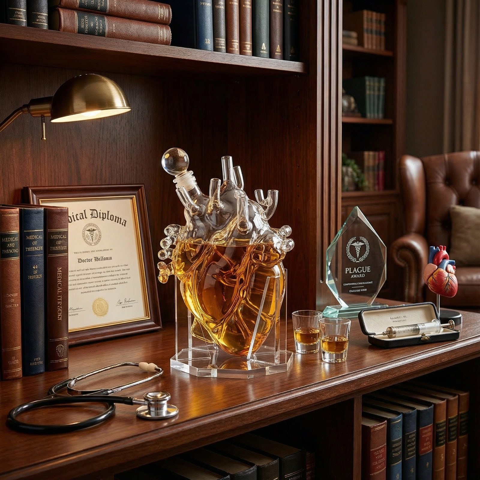• For a unique gift for a wedding, birthday, anniversary, or any special occasion, our Heart Decanter is perfect. This decanter is a must have for the doctor who enjoys relaxing with a glass of whiskey or anyone that just wants to add more luxury to their homes. In addition, this captivating decanter also makes an impressive addition on your home bar. The intricate design of this borosilicate glass decanter makes it stylish and durable.