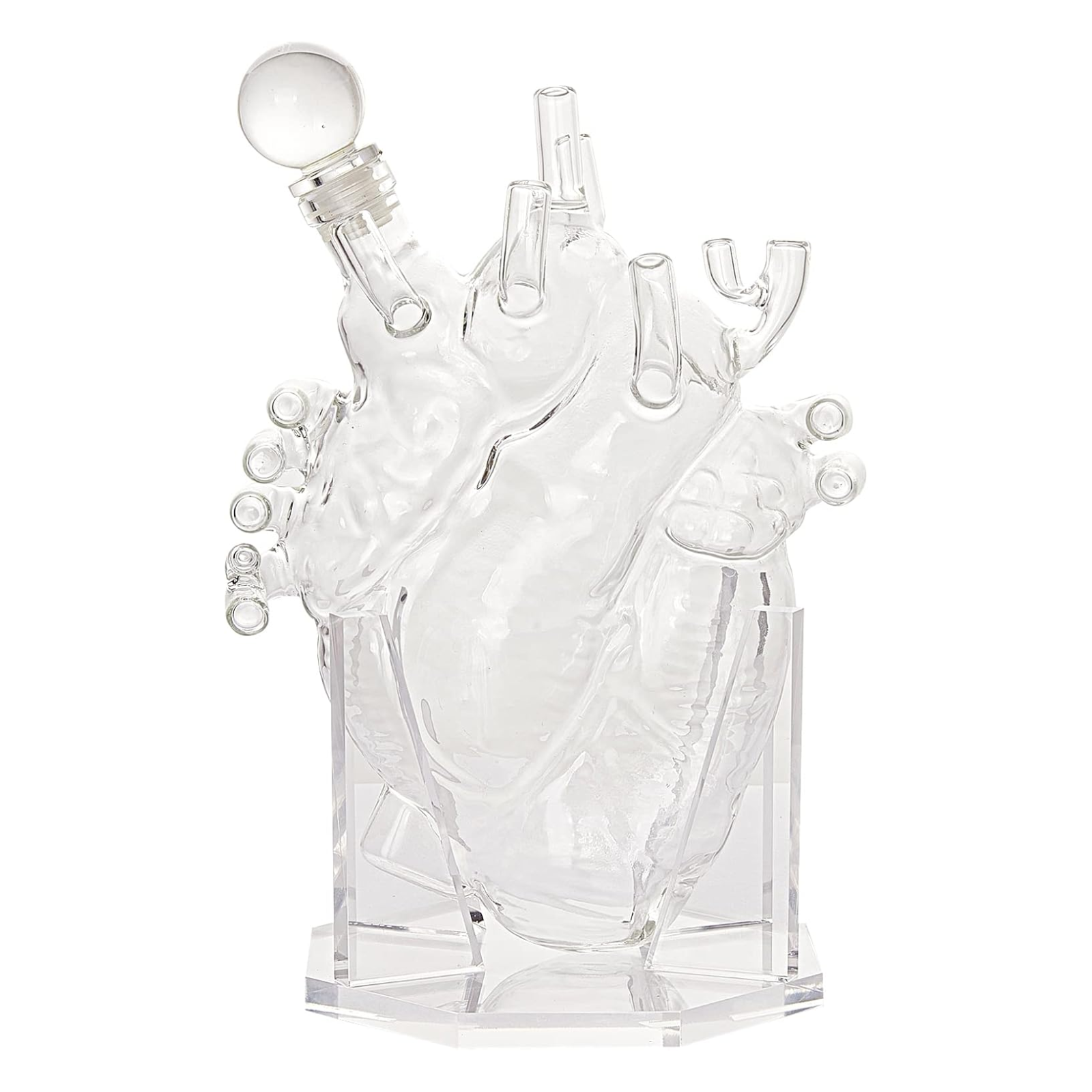 • Both charming and full of class, the Heart Decanter is a must have for the biologist, doctor, surgeon or anyone that just wants to add more luxury to their homes décor. This gorgeous designer decanter looks great on any counter or table. Measuring approximately 10.3" in height and holds 750ml of your favorite beverage! Adding class to your home, this Realistic Heart will stand out from all other glass decanters.