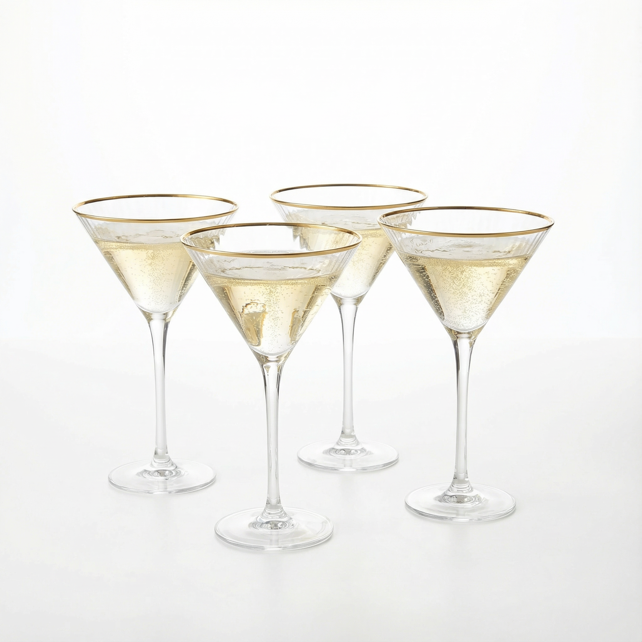 - This set of four Gold Martini Glasses makes a wonderful gift for lovers of fine champagne. Each elegant glass is perfectly weighted to keep your bubbles smooth and steady, with a elegant stem. They will become your favorite go-to glass for any celebration from memorable anniversaries to weddings and parties! Each glass is handmade by skilled artisans in our workshop and made of crystal that sparkles and shines to enhance your drinking experience.