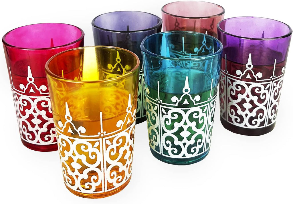 Moroccan Glasses Artisan Hand-Made Multipurpose 170 ml 6 oz Tea, Coffee and Wine Moroccan, Hot & Cold Tumbler - Marrakech & Casablanca Tea Cups Set of 6 Hand Blown Colorful Made in Morocco (6 Colors)