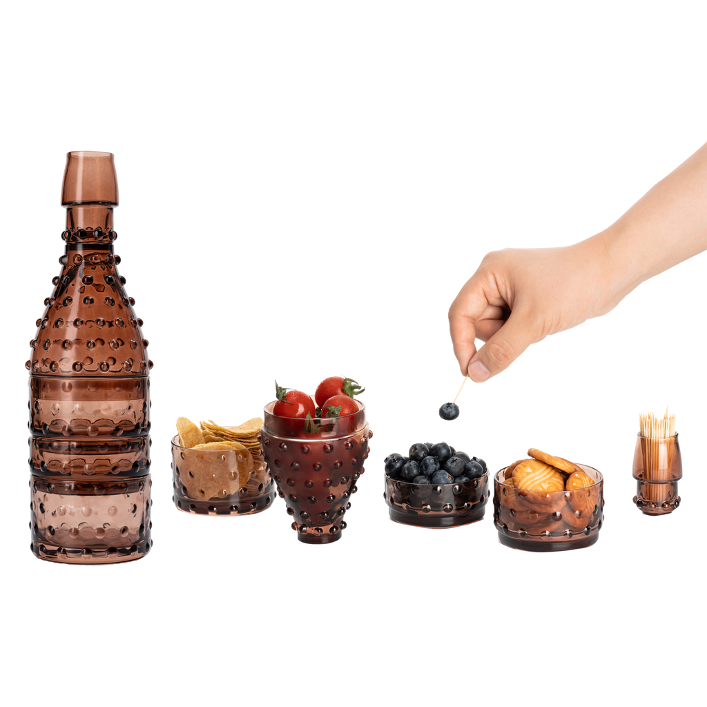Essential Stacking Bowls & Drinking Glasses, 5 Tier, for All Sorts of Dishes & Toothpicks, Fruits, Cheese, Meats & More! Appetizer Dish Set Nesting Bowls, Stacked To Form a Decorative Bottle of Wine