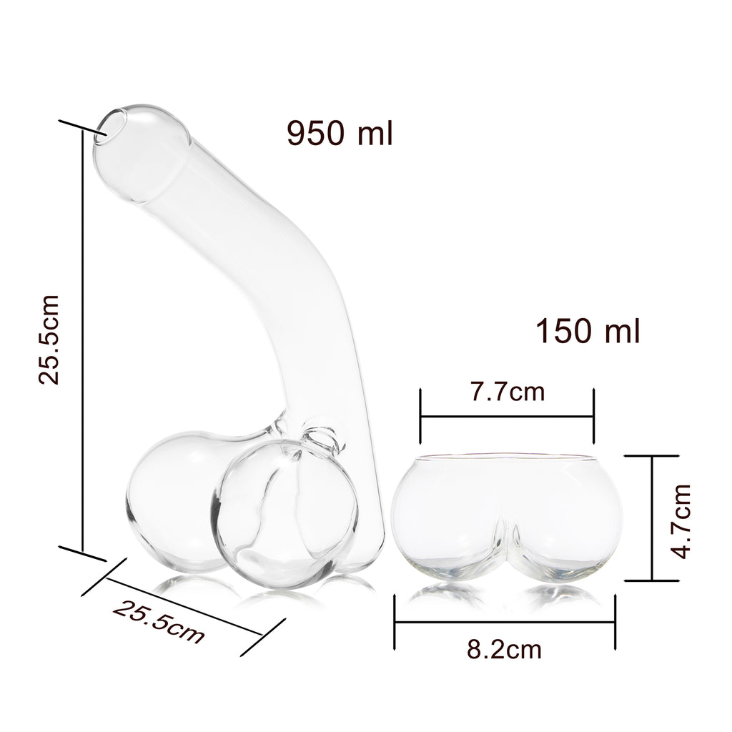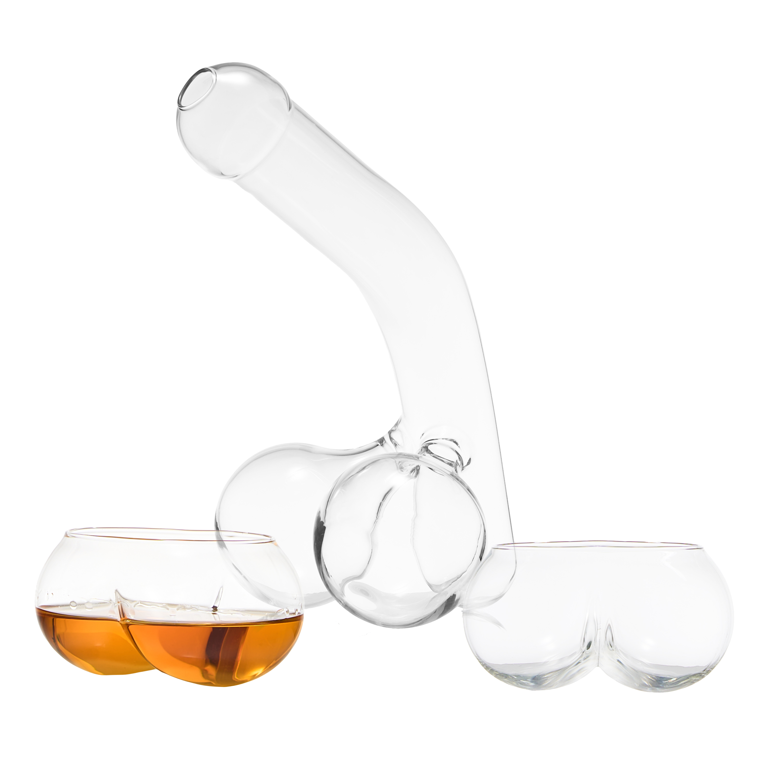 - AN ABSOLUTE MUST DECANTER AND GLASSWARE: This decanter and two glasses are a must have for any household who enjoys entertaining and a great laugh. It is uniquely shaped and a great entertaining solution for your next gathering. Perfect for bachelorette parties, bridal showers, housewarming gift.