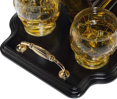 - LIMITED HOCKEY SET - WITH A BEAUTIFUL MAHOGANY WOOD HOLDER: This is a limited Edition Large Hockey Stick Decanter Set and 4 Hockey Helmet Whiskey Glasses. The Stick and glasses have many intricate parts and is exceptionally unique in design.