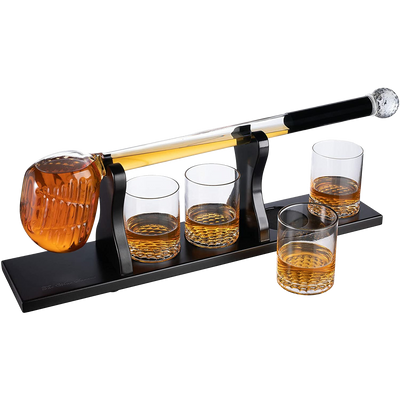 Baseball Bat Whiskey & Wine Decanter 4 Baseball Glasses, Spirits Set - Baseball Coach Gifts, Baseballs Lovers Coaches, Dad, Boyfriend, Brother, Friend Gift - For Whiskey & Wine (Standard Base)