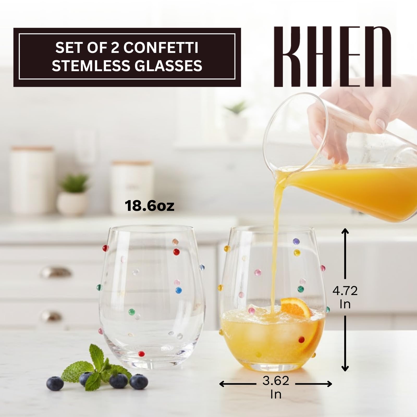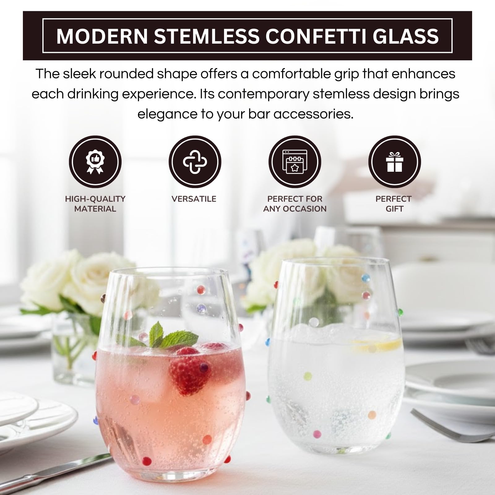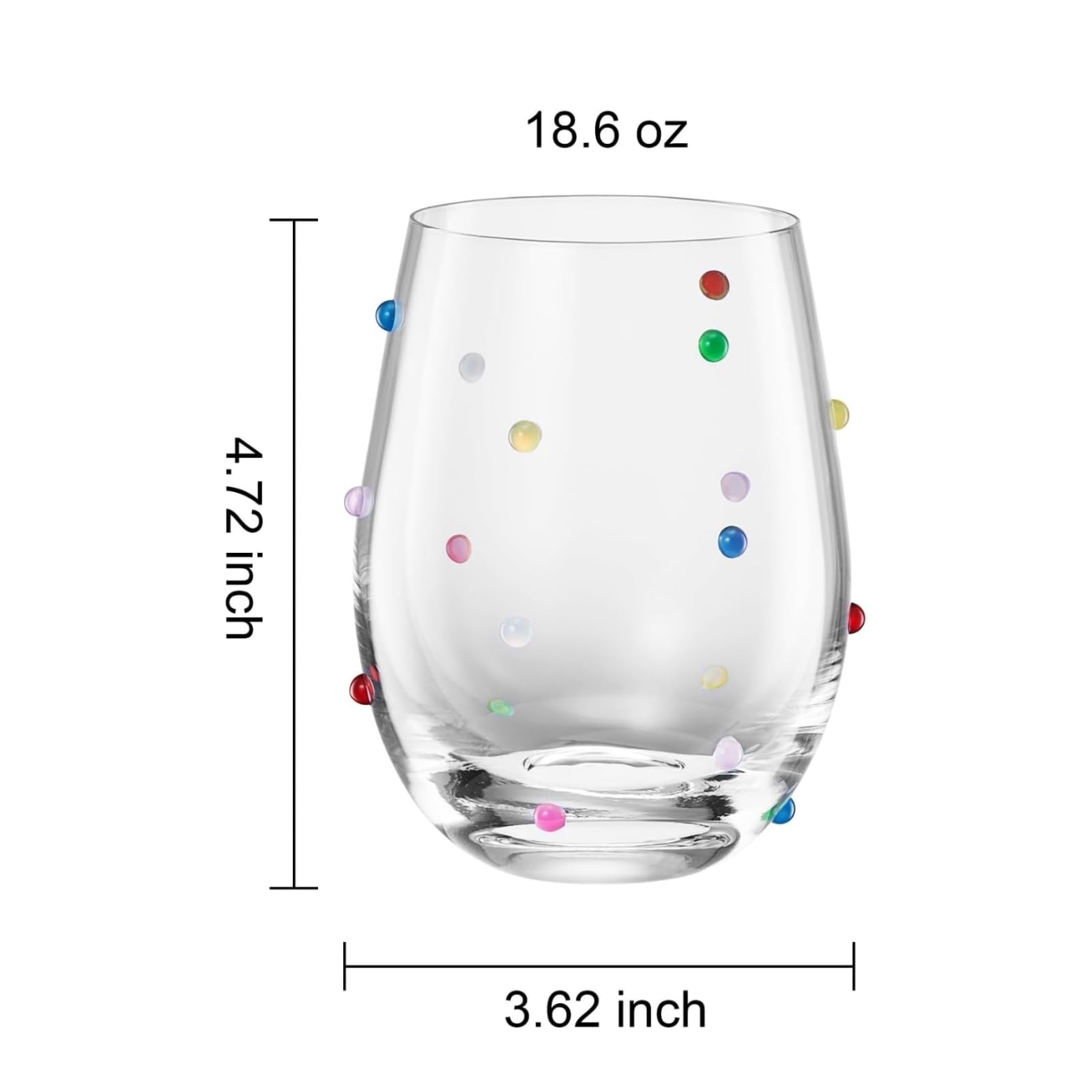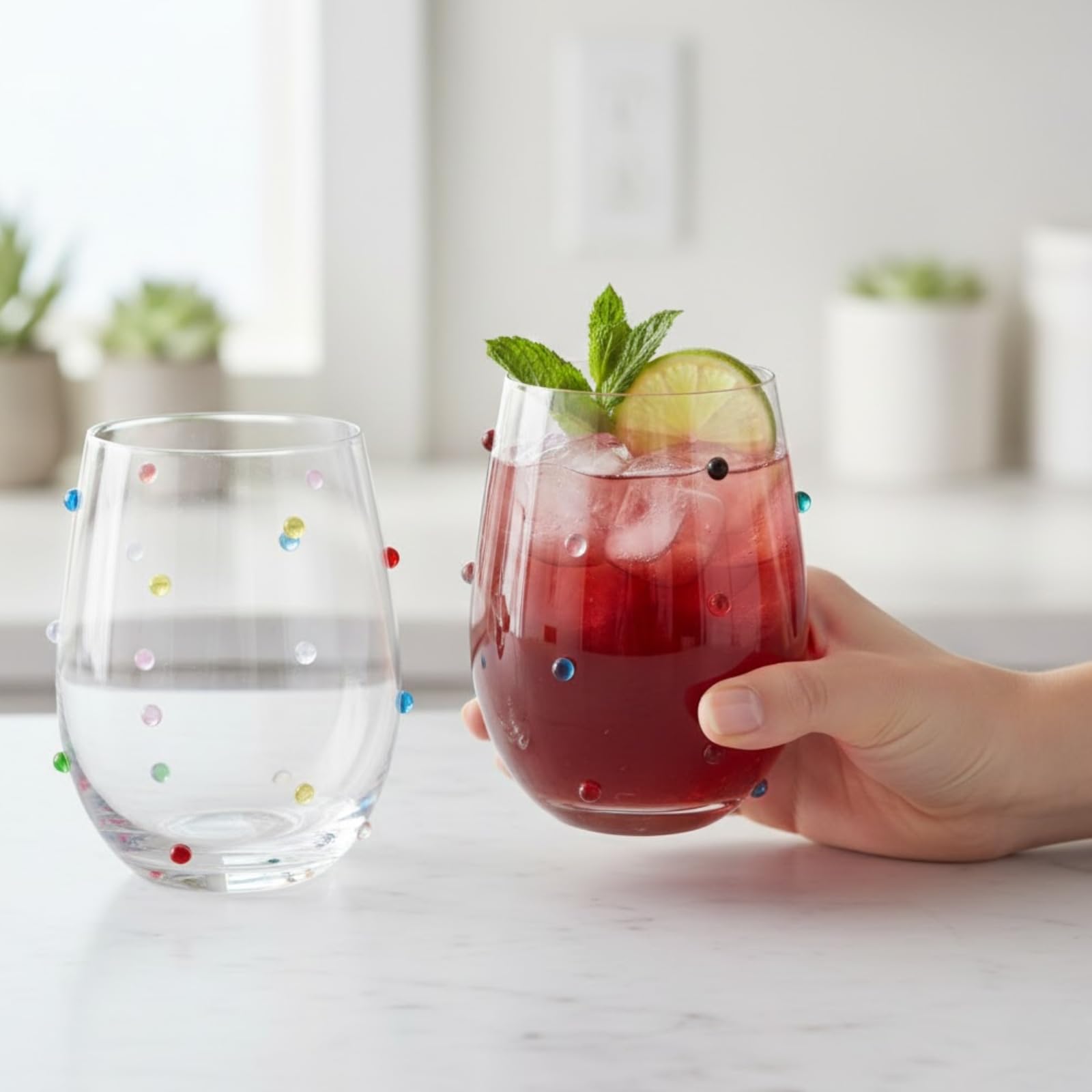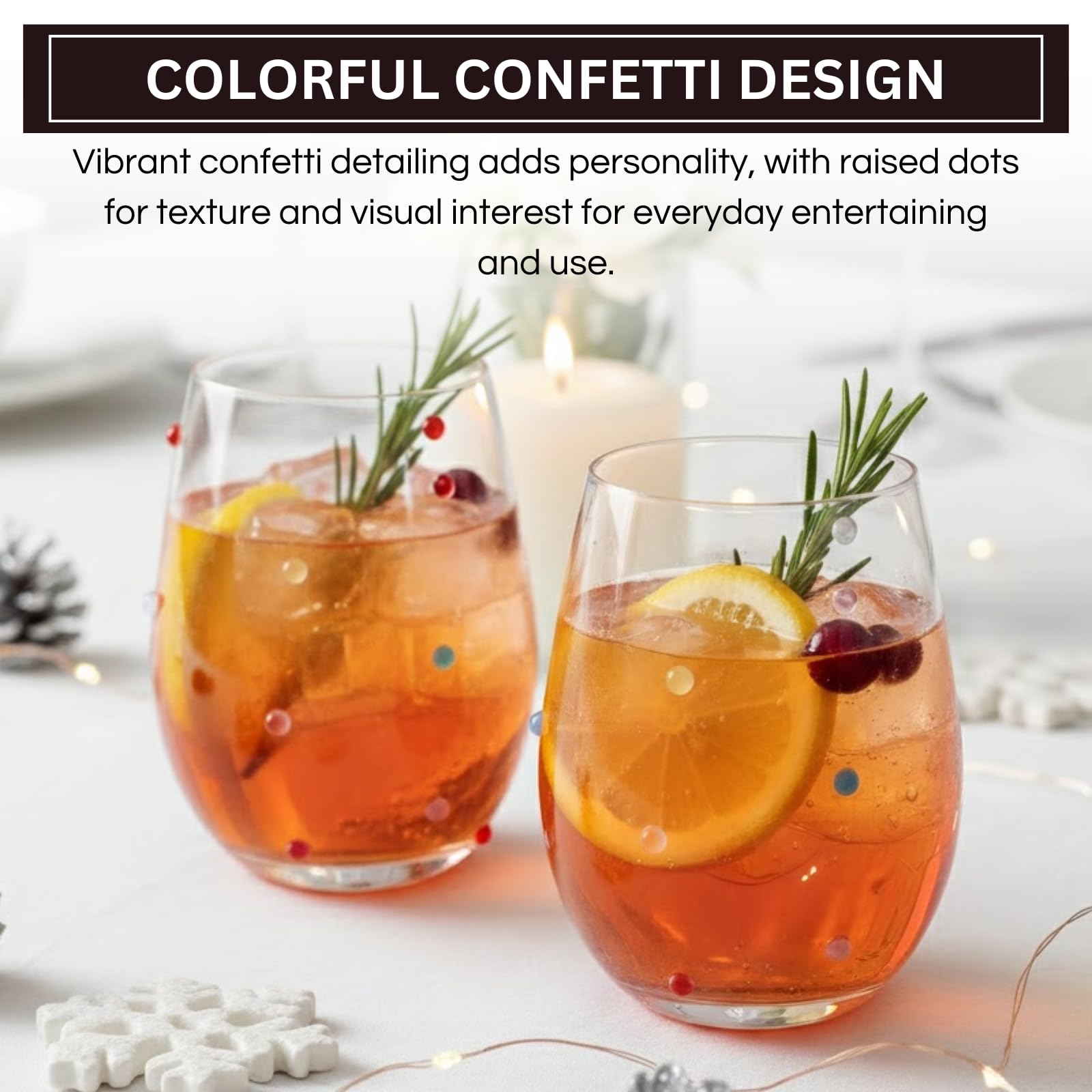 Confetti Stemless Wine Glasses Set of 2, 18.6oz Colorful Clear Glass Drinkware for Water Juice Cocktails, Modern Handmade Glassware for Parties Dining Entertaining Display Housewarming Birthday Gifts