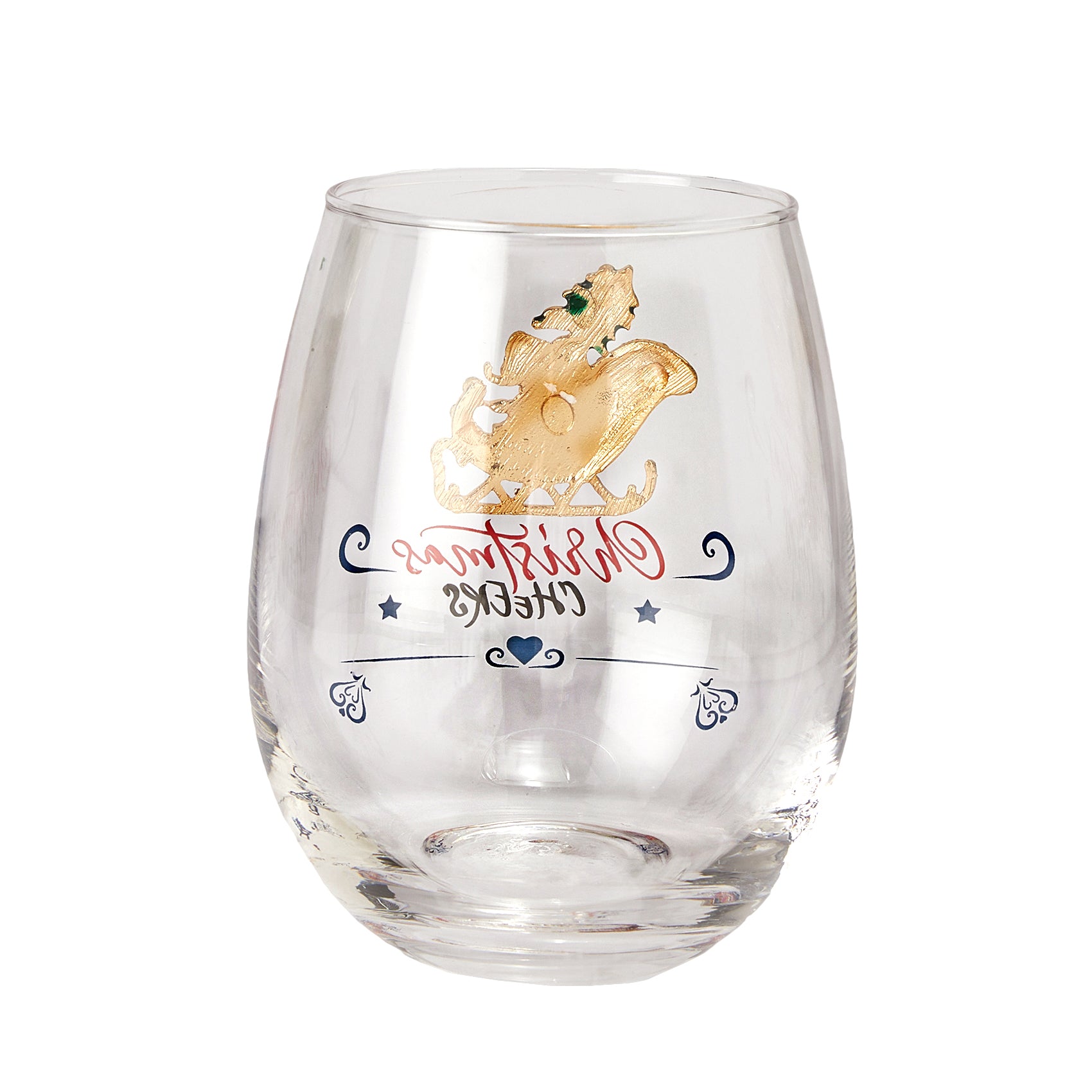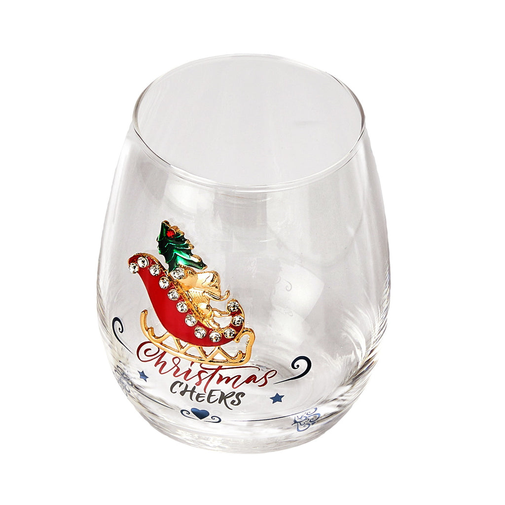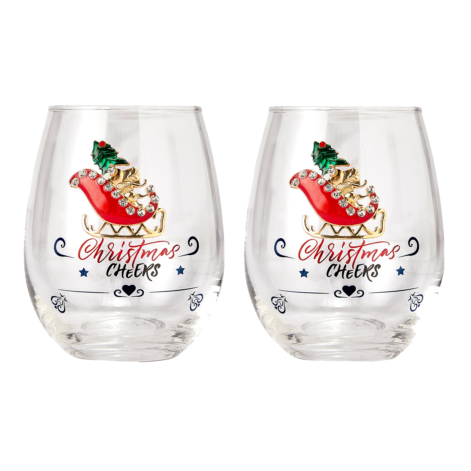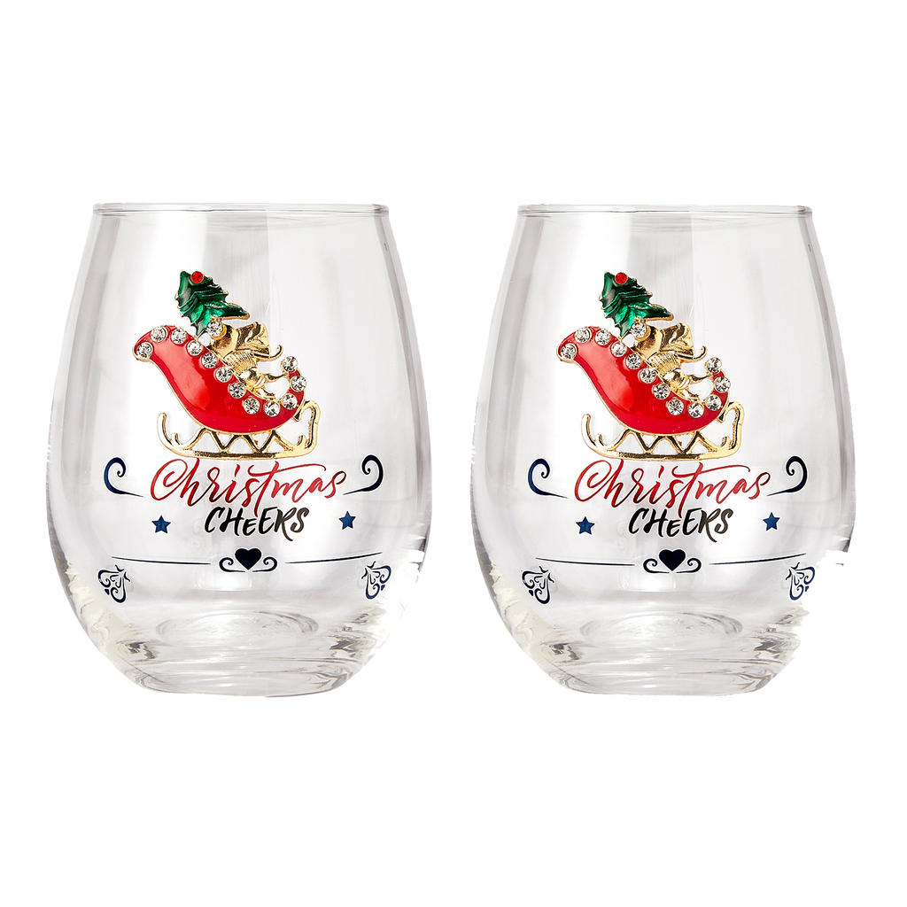 - This Stemless Christmas Wine Glass Set of 2 is a great and unique way to add a bit of festivity to your Holiday décor. The exquisite design on the wine glasses itself is sure to enhance any night by the fire or surrounded by loved ones! Whether you're looking for something cozy or festive, we're sure you'll find that our Christmas glasses have what you need.