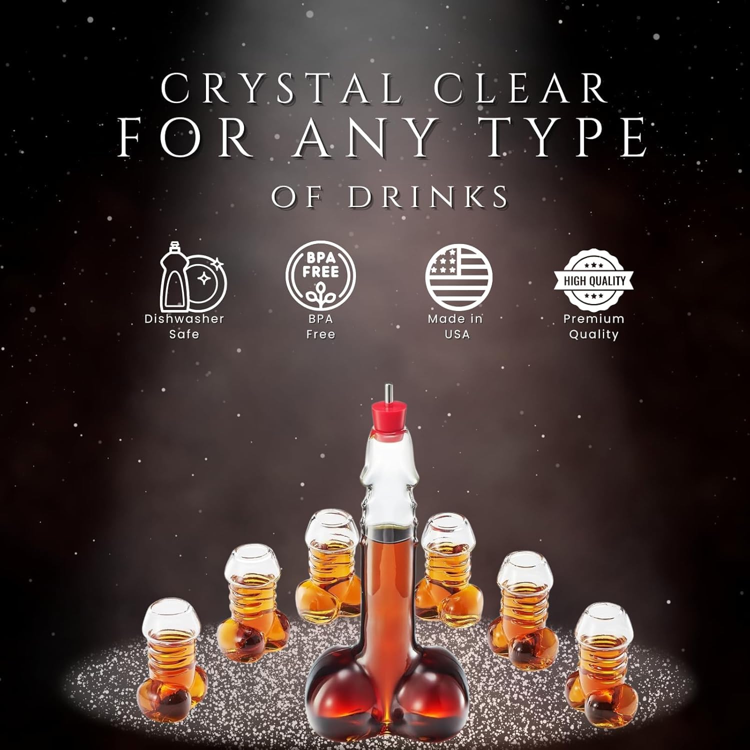 Decanter Set with Glasses, Decanter -17oz-, Shot Glasses -3oz -, for Whiskey, Liquor, Tequila, Vodka, Bar Glasses, Cocktail Glasses, Bachelorette Party, Funny Gifts