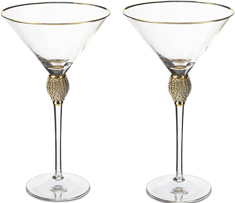 - HEIRLOOM QUALITY WORKS OF ART: The shimmering glasses featuring graceful curves and are truly fascinating work's of art. Handmade and mouthblown of the highest quality by master artisans. A very special and extravagant way to sip your martini! The striking display is emphasized by the gold rim and ball-like centerpiece with crystals! These glasses have a contemporary and shiny look that is utterly fashionable in any setting.