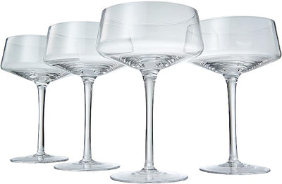- The glasses' unique and elegant design, combined with the silver spoon, sets them apart from other glassware collections. The coupes hold 8 ounces of liquid, making them perfect for cocktails and martinis. They are perfect for any special occasion and make an excellent gift for the ultimate hostess. They are not only stylish but also practical, ensuring that they will be enjoyed for years to come. H:6.2"x Dia.: 3.7"