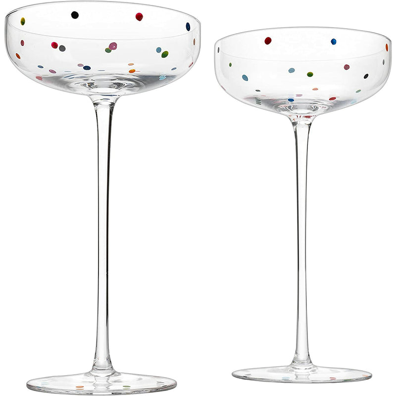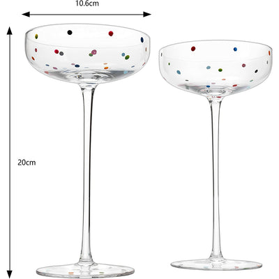 Polka Dot Champagne Coupe Glasses Set of 2 8.8 oz by The Wine Savant - Polka Dot Rainbow Colored Glasses, Cocktail Glassware, Polka Dot Gifts Damien Hirst, Gift Idea For Everyday, Weddings, Parties
