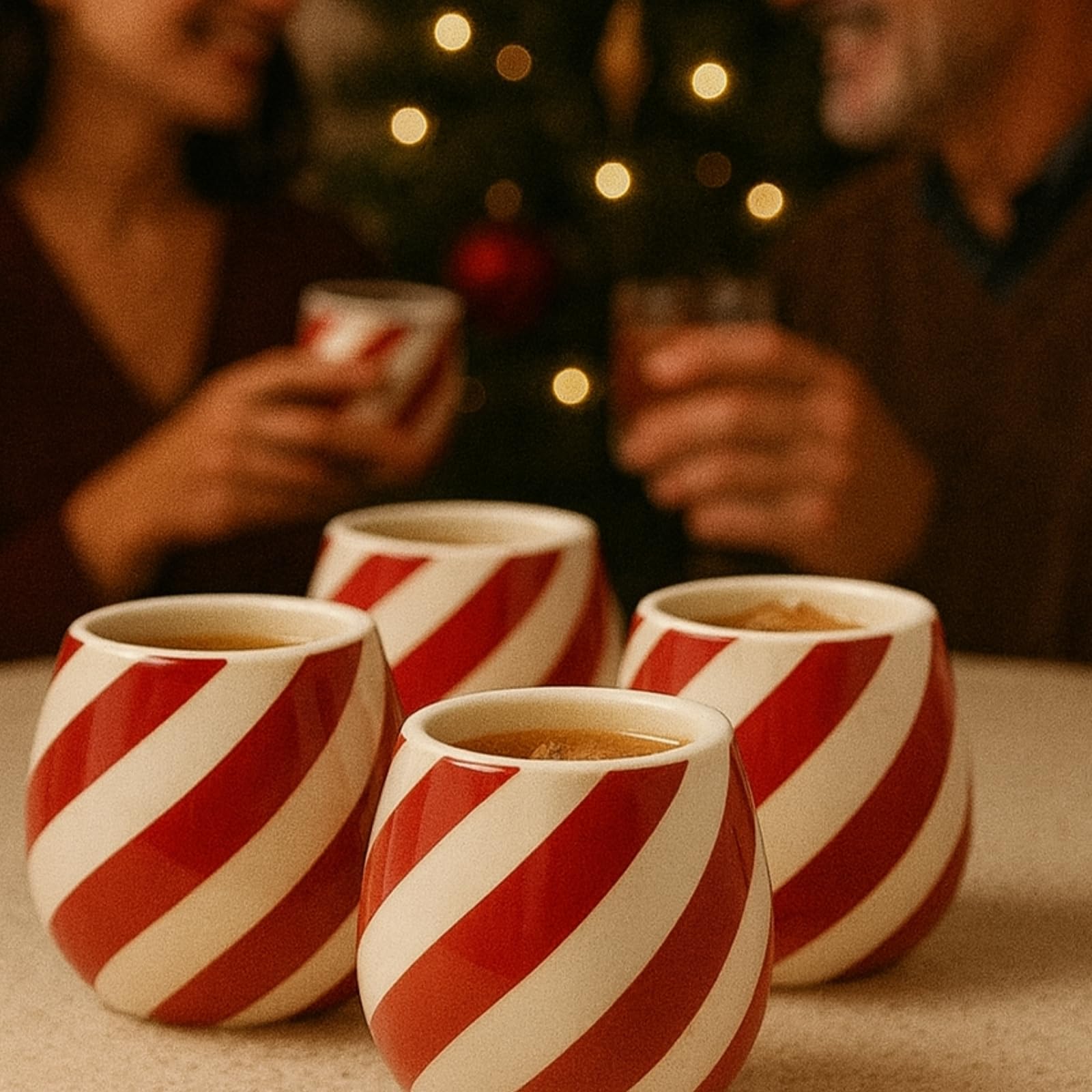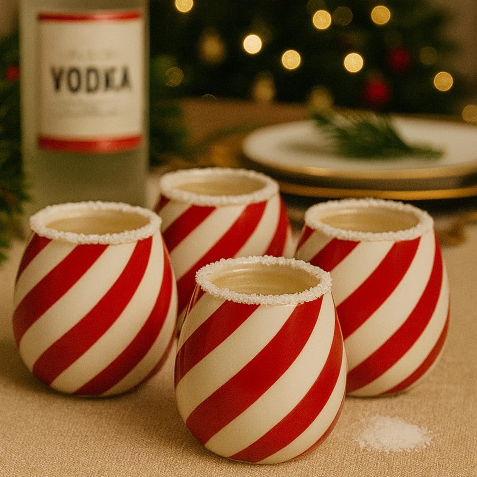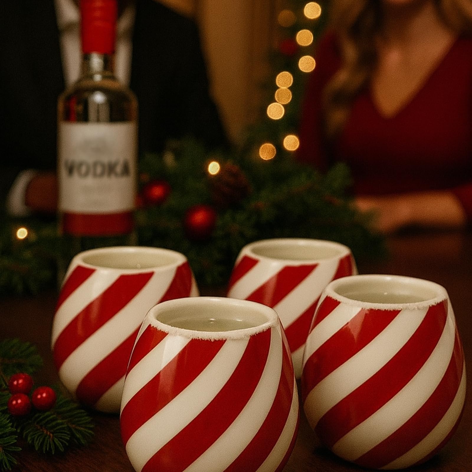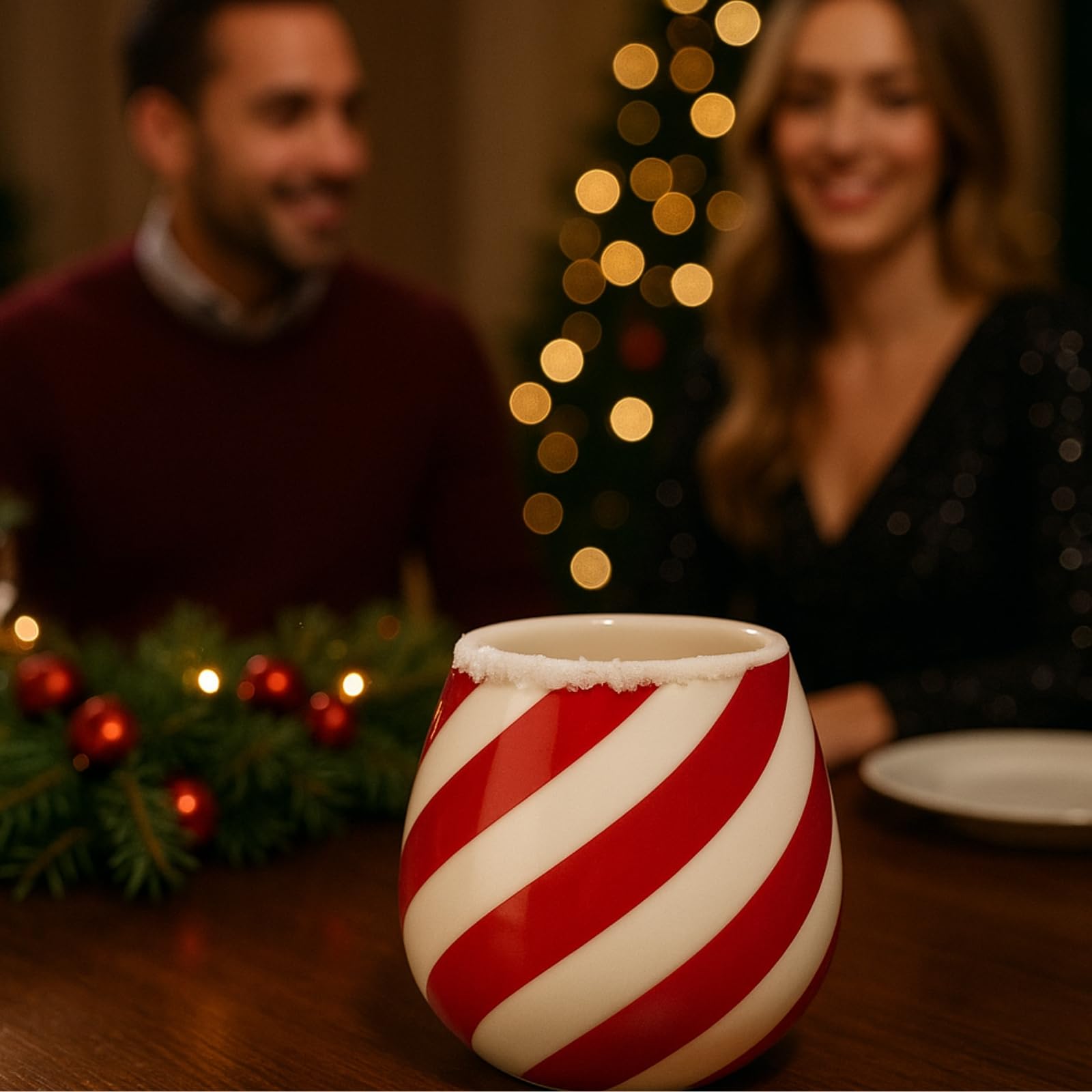 Celebrate the season with our Christmas Ceramic Stemless Wine Glasses, featuring a festive red and white peppermint swirl design that brightens any winter table decor. Made from durable ceramic, these striped holiday drinkware pieces are perfect for wine, hot cocoa, or cocktails. This set of four doubles as unique glassware and seasonal beverage holders, perfect for festive mugs or party cups. Whether for entertaining or gifting, these stylish tumblers enhance your Christmas dinnerware, kitchen barware, or holiday celebrations with charm and function.