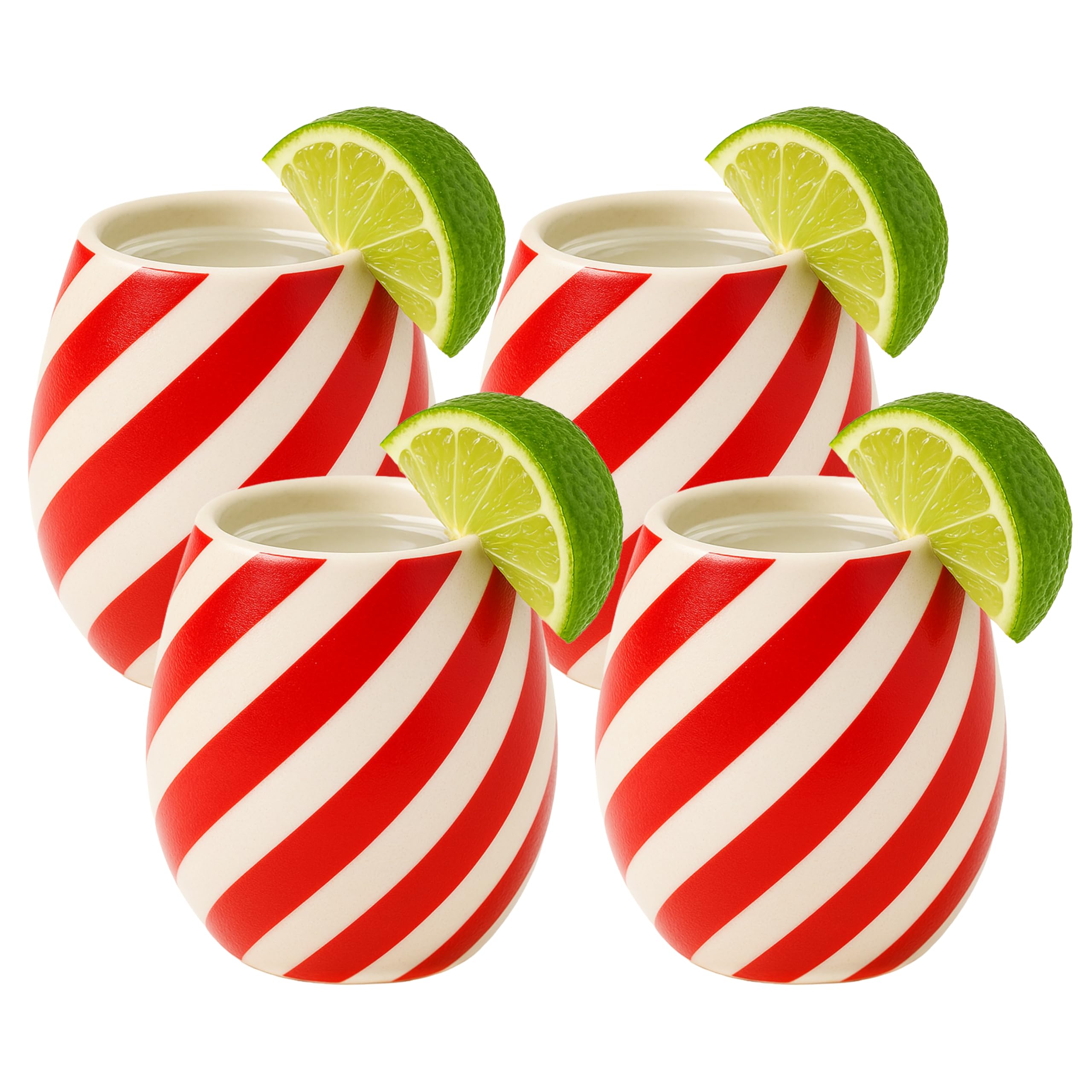 Red Swirl Christmas Ceramic Stemless Shot Glasses | Set of 4 | 6oz Peppermint Swirl Shot Glass | Winter Barware for Cocktails | White Elephant Gifts | Holiday Drinkware & Gift Hosts
