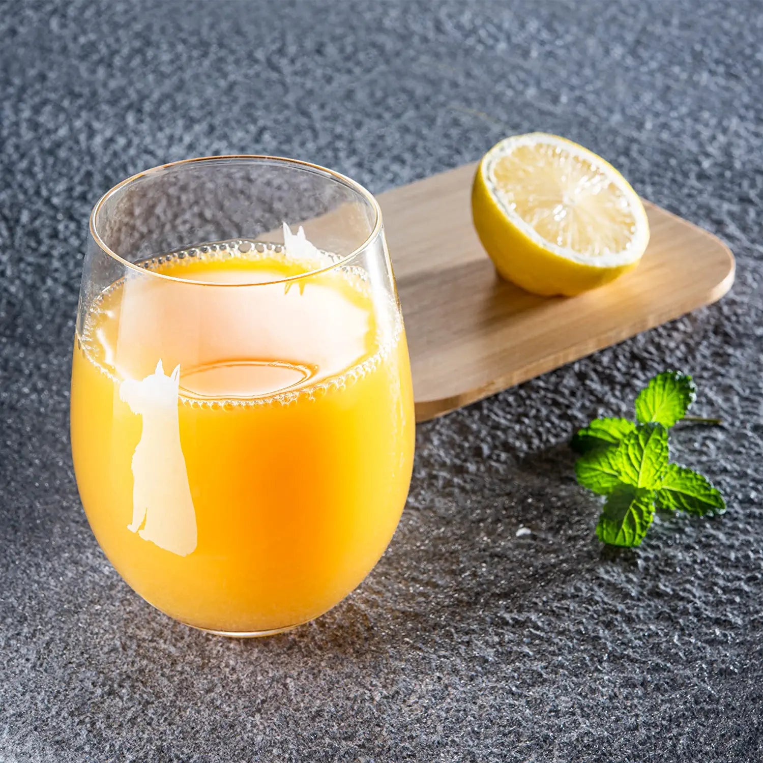 - A stylish and smart pair of stemless wine glasses. These glasses are the must-have addition to your home bar or kitchen. Our stemless wine glass set is perfect for birthdays to anniversaries & housewarming parties. This unique set of 2 wine glasses is sure to make you smile! A must-have for dog lovers, our glassware features a unique etching of your favorite breed. Perfect for wedding gifts or housewarming presents, the Schnauzer Wine Glasses makes a thoughtful present for any occasion.