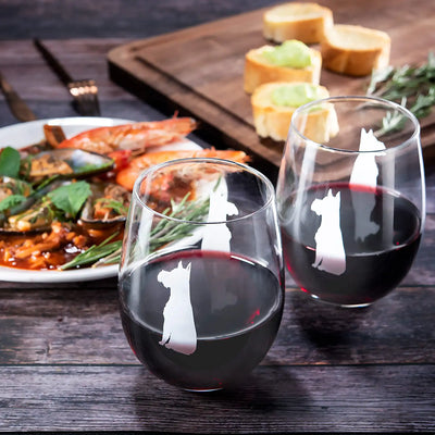 - The Schnauzer Wine Glasses are sure to be a hit at your next event! These are perfect for holidays, birthdays, Christmas and any other special occasion you can think of. Enjoy your favorite drink with our unique & beautiful Schnauzer Glasses. Perfect for everyday use and special occasions, these glasses will add style to any home bar or tabletop. You will love these beautiful stemless wine glasses! A great addition to your bar to show off your love for the Frenchie!