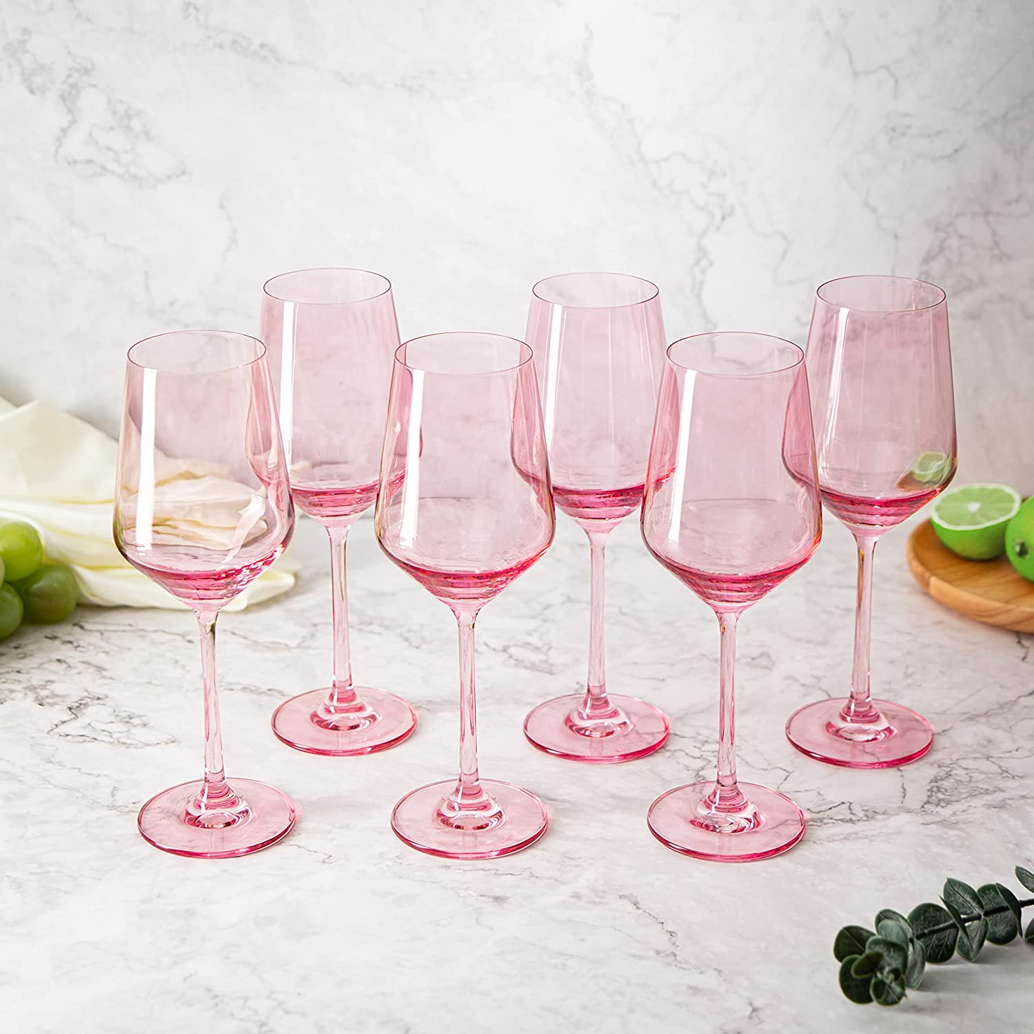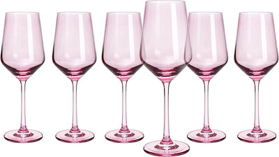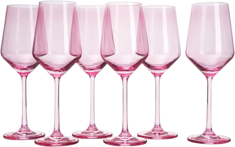 Colored Wine Glass Set,12 oz Glasses Set of 6, Unique Italian Style Tall Stemmed for White & Red Wine, Water, Margarita Glasses, Color Tumbler, Gift, Viral Beautiful Glassware (Blush Pink)