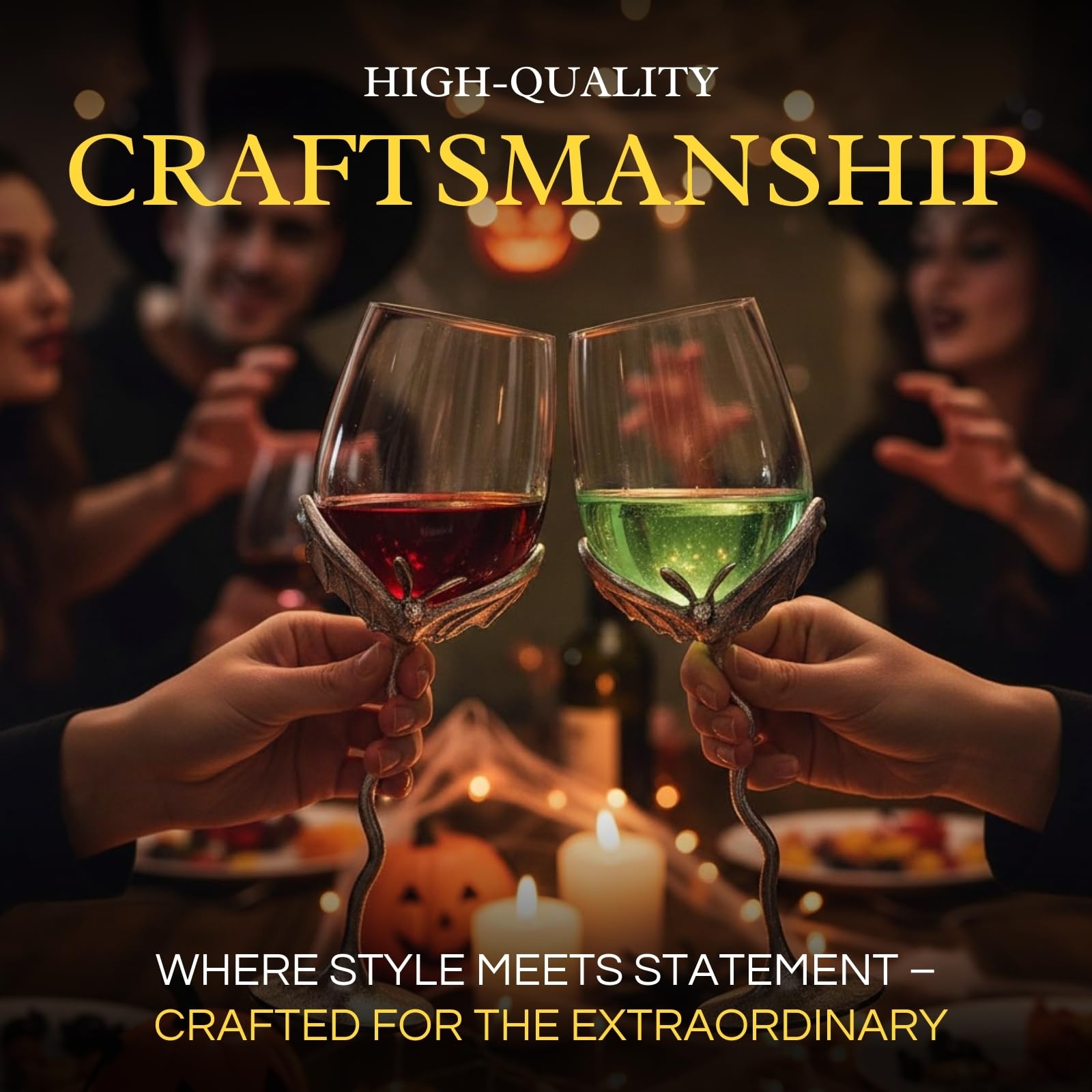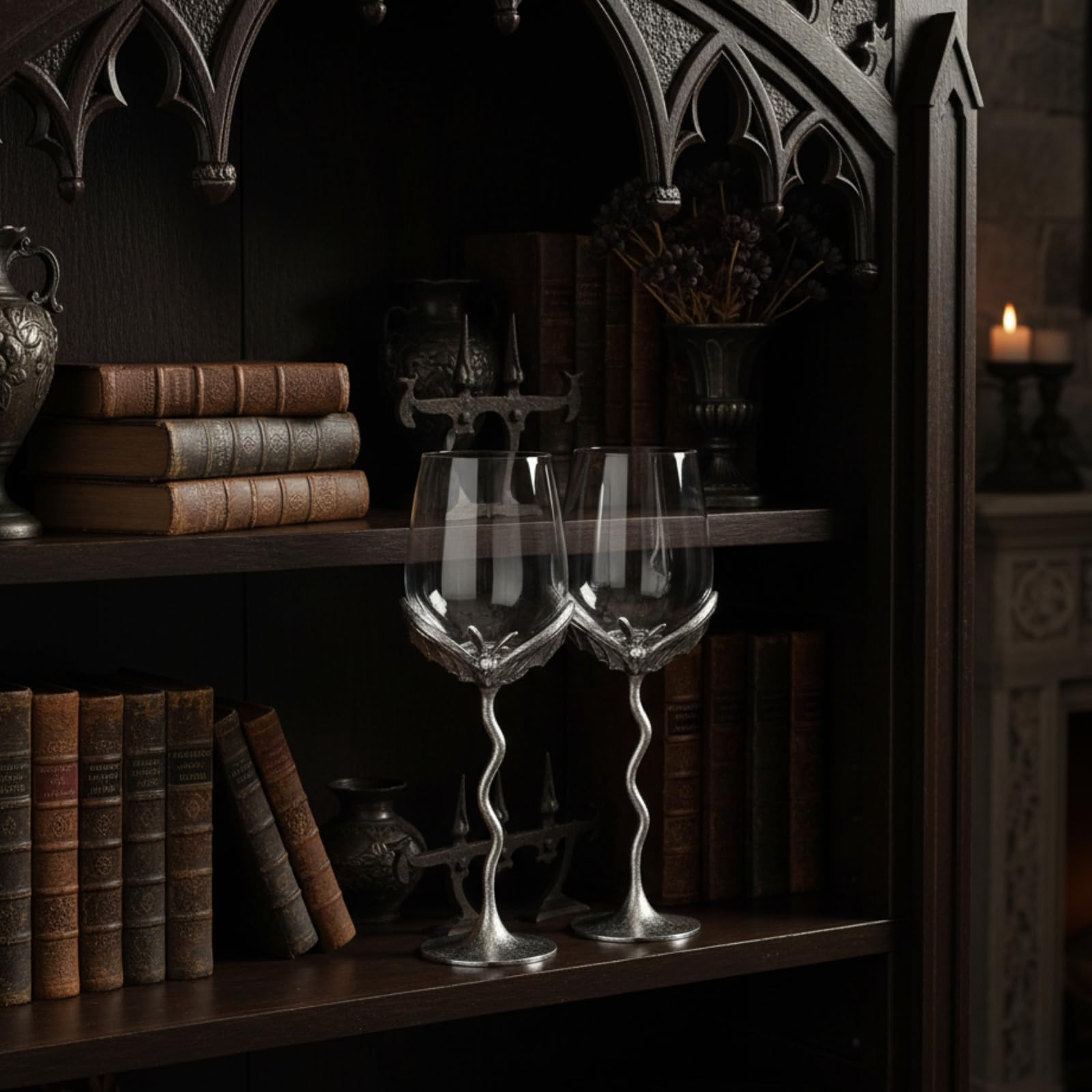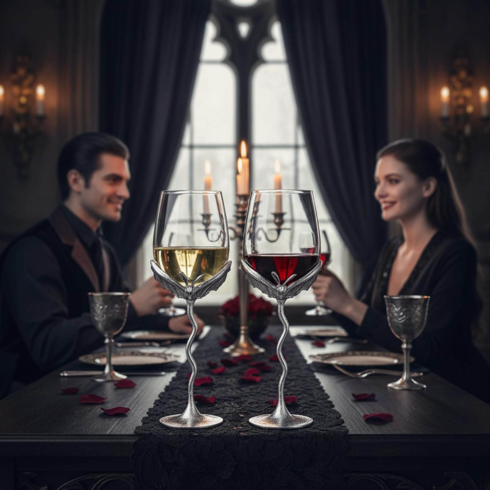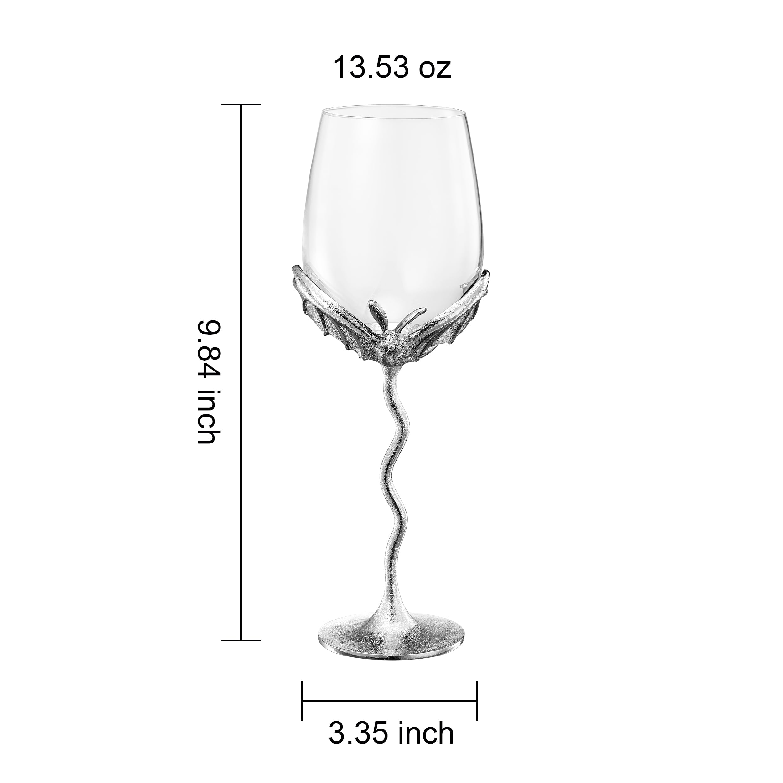 Elevate your barware with this Silver Bat Wine Glasses Set of 2 featuring gothic glasses crafted from borosilicate glass and alloy steel stemware with sculpted bat wings and crystal vessels. These unique barware pieces serve as both decorative and functional drinking glasses, perfect for red or white wine. The gothic-inspired design adds a spooky yet elegant touch to dining, weddings, parties, or Halloween gatherings. Durable and eye-catching, this glassware pair makes a memorable gift for collectors, wine lovers, or anyone who appreciates distinctive display pieces with vintage charm.
