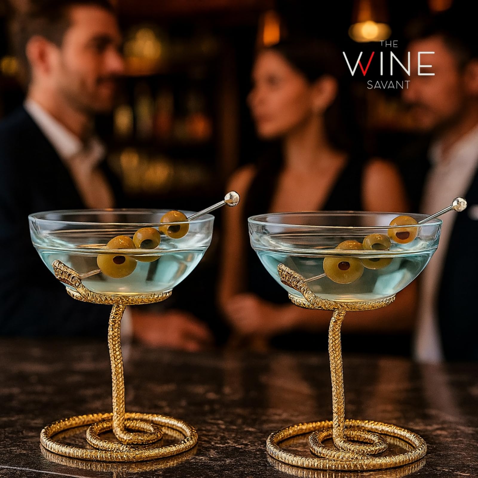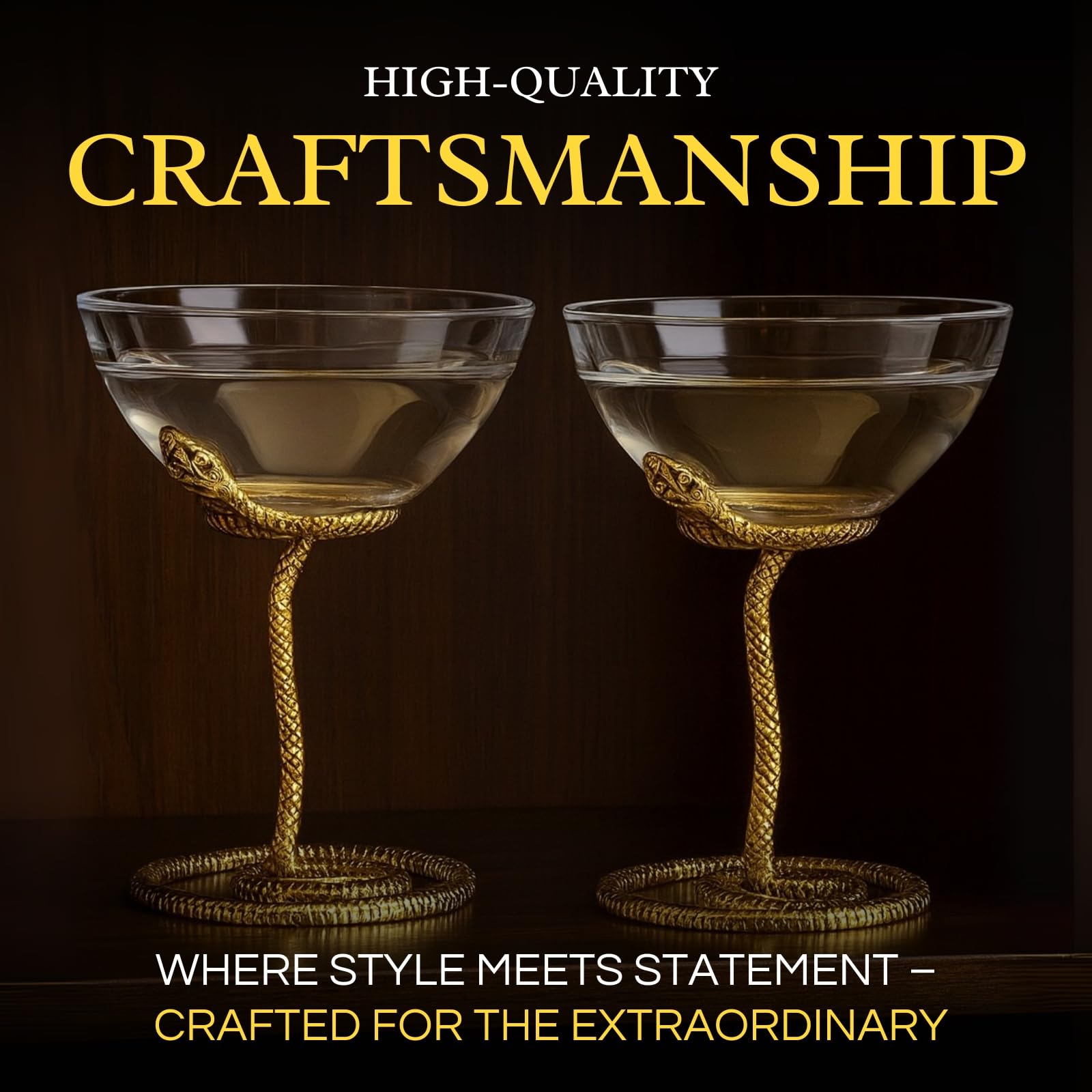 Snake Serpent Cocktail Glasses - 2 Set Gold Design Unique Reptile Inspired Barware - Themed Parties Gothic Décor Snake Lover Gifts or Spooky Drinking Glasses Perfect for Mixed Drinks and Entertaining
