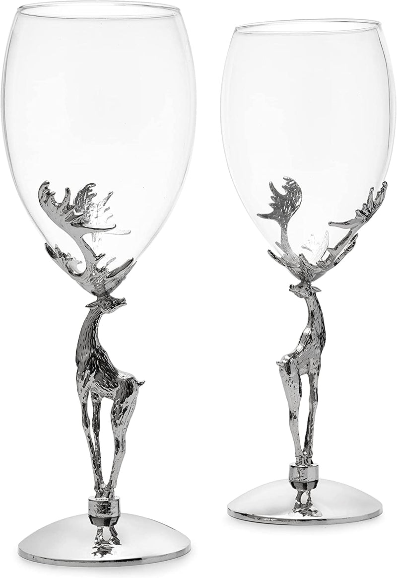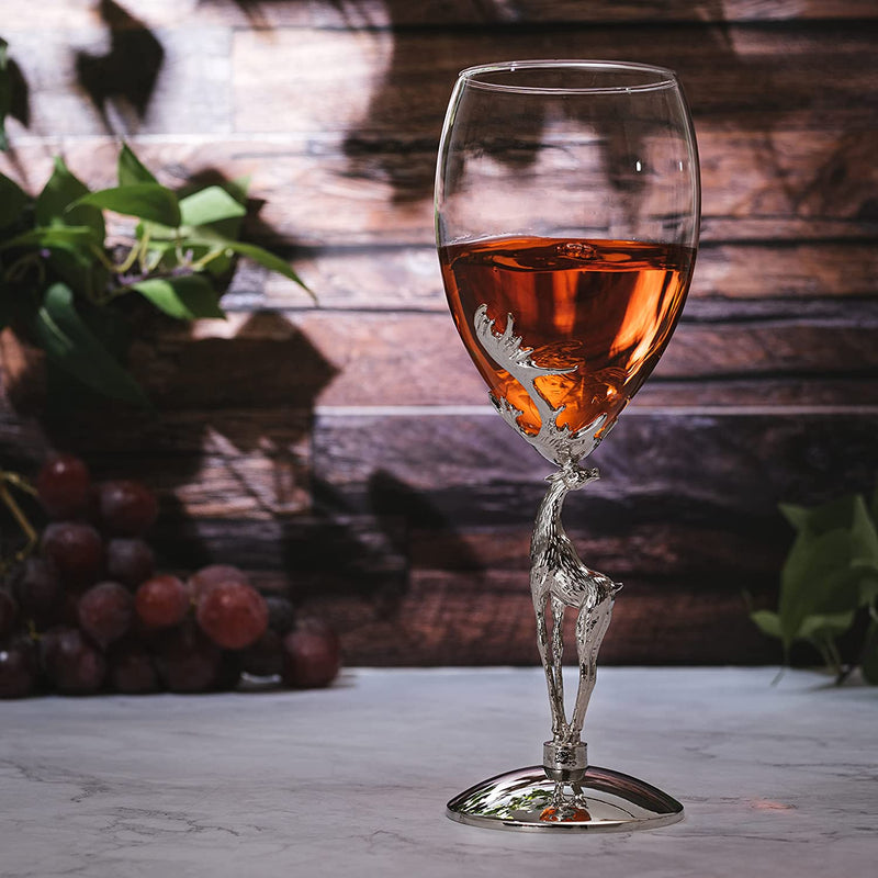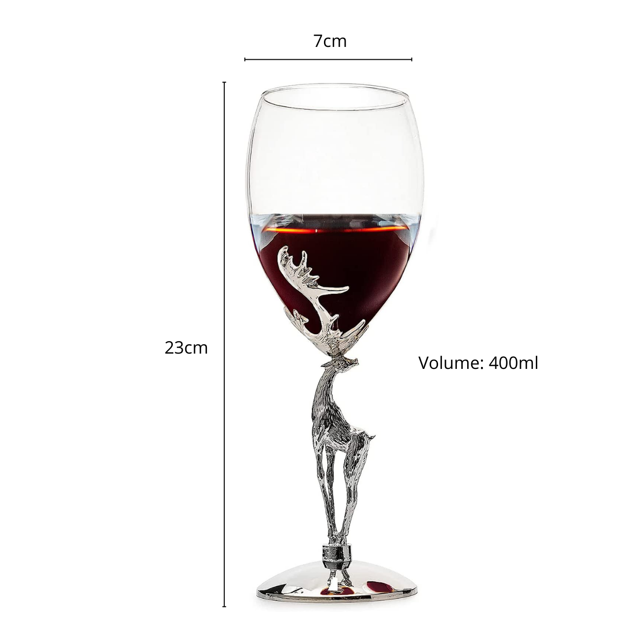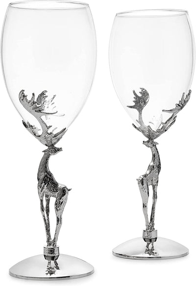 - Your hunt for the perfect wine glasses is over. These gorgeous and ornate stag wine glasses capture the elegance and luxury of the beautiful stag. Recreate the feeling of a seeing a stag and toast with friends and family using this set of two silver-toned glasses. The stag wine glass set is a must have drinkware accessory for your wine adventure. Perfectly displayed in your bar, dining area, or home, these are the most unique wine glass you will find. It makes a great gift for all occasions