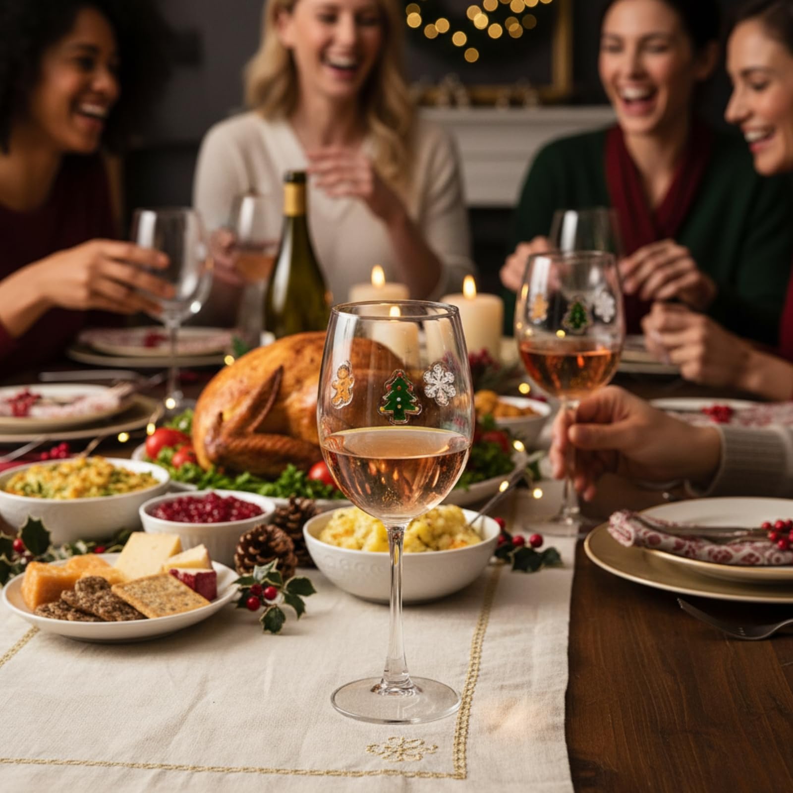 Stemmed Christmas Icon Glass Cups - 14 oz Snowman Gingerbread Man Candy Cane Xmas Tree Stemless Wine Glasses Red Large Wine Icon Juice Glasses Drinking Cups for Holiday Party Supplies & Christmas Gift