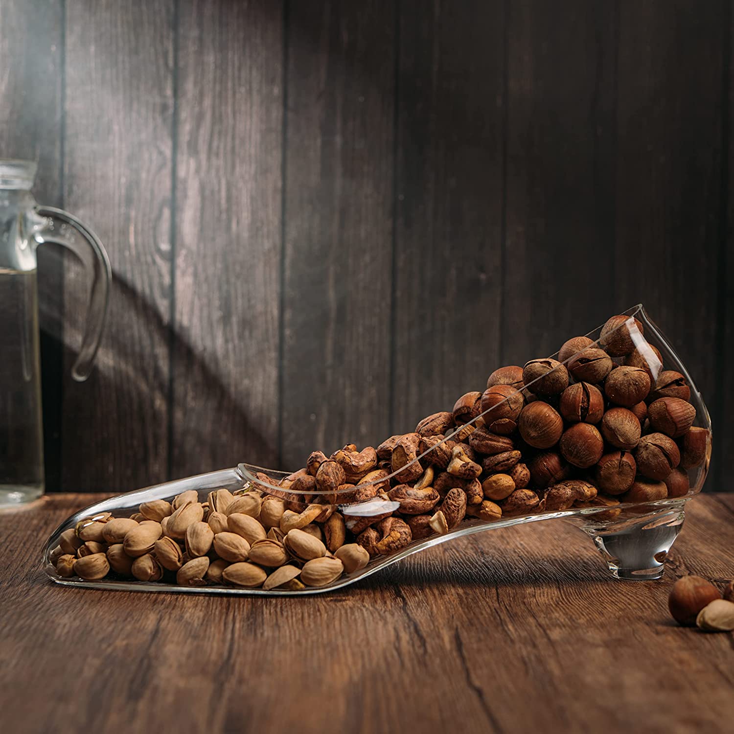 - Our Stiletto Nut Bowl is a unique conversation piece with a sculpted heel, hand-made from glass and designed to house your favorite snack including nuts, trail mix, pistachios, candy and more. These bowls are perfect for home kitchen counters and make great wedding gifts! Measuring at 6" in height, 13" in length. This is a handcrafted stiletto glass from The Wine Savant.