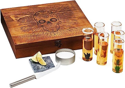 - Introducing the Skull Tequila Gift Set, a captivating and comprehensive collection that encompasses everything you need to elevate your tequila tasting experience. This set is designed to impress, featuring all the essentials in a beautifully crafted wooden skull box. It is the ultimate gift for tequila and liquor lovers, offering both functionality and style.