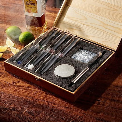 - To complete the set, a knife is included to cut up fresh limes, ensuring you have the perfect citrus accompaniment for your tequila. A tin of salt is also provided, allowing you to rim your shot glasses for the classic salted rim experience. Additionally, a skull-shaped coaster is included to protect your surfaces while adding a stylish touch to your tequila presentation.