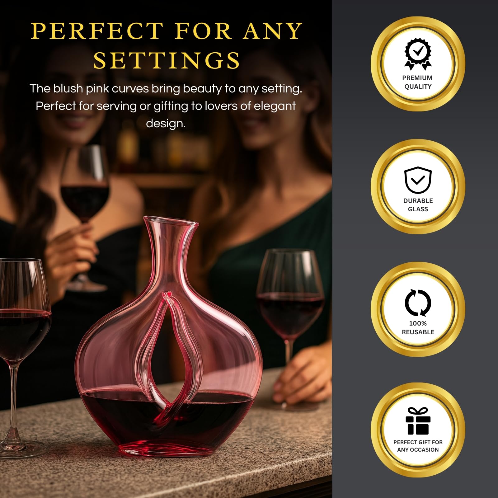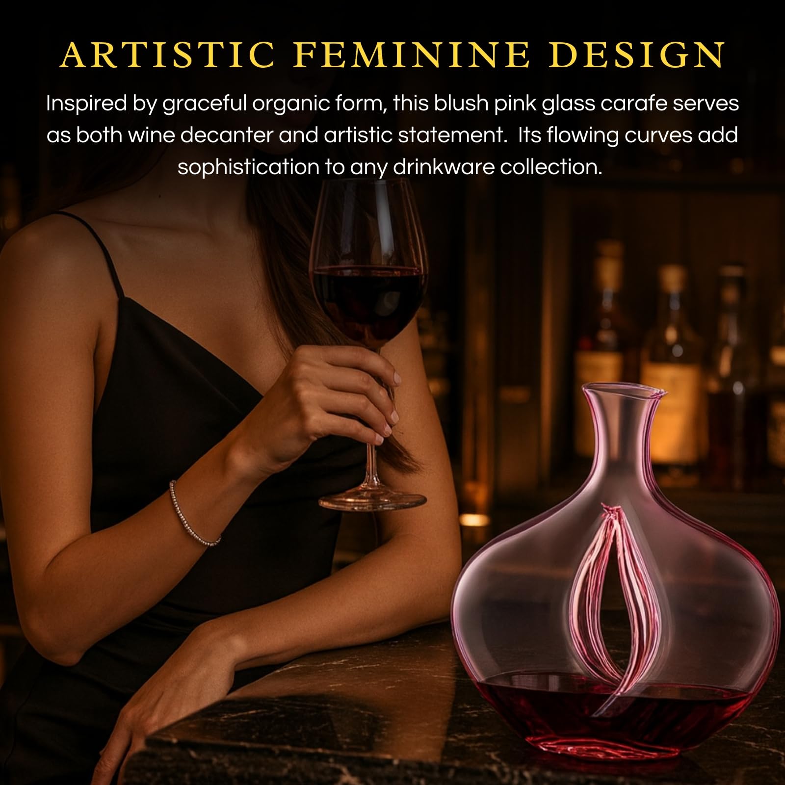 Vulva Blush Pink Venus Vagina Glass Carafe Decanter Pitcher Artistic Modern with Sculptural Organic Form Handblown Piece - Wine Water or Cocktails Unique Art Glass Accent Centerpiece or Home Décor