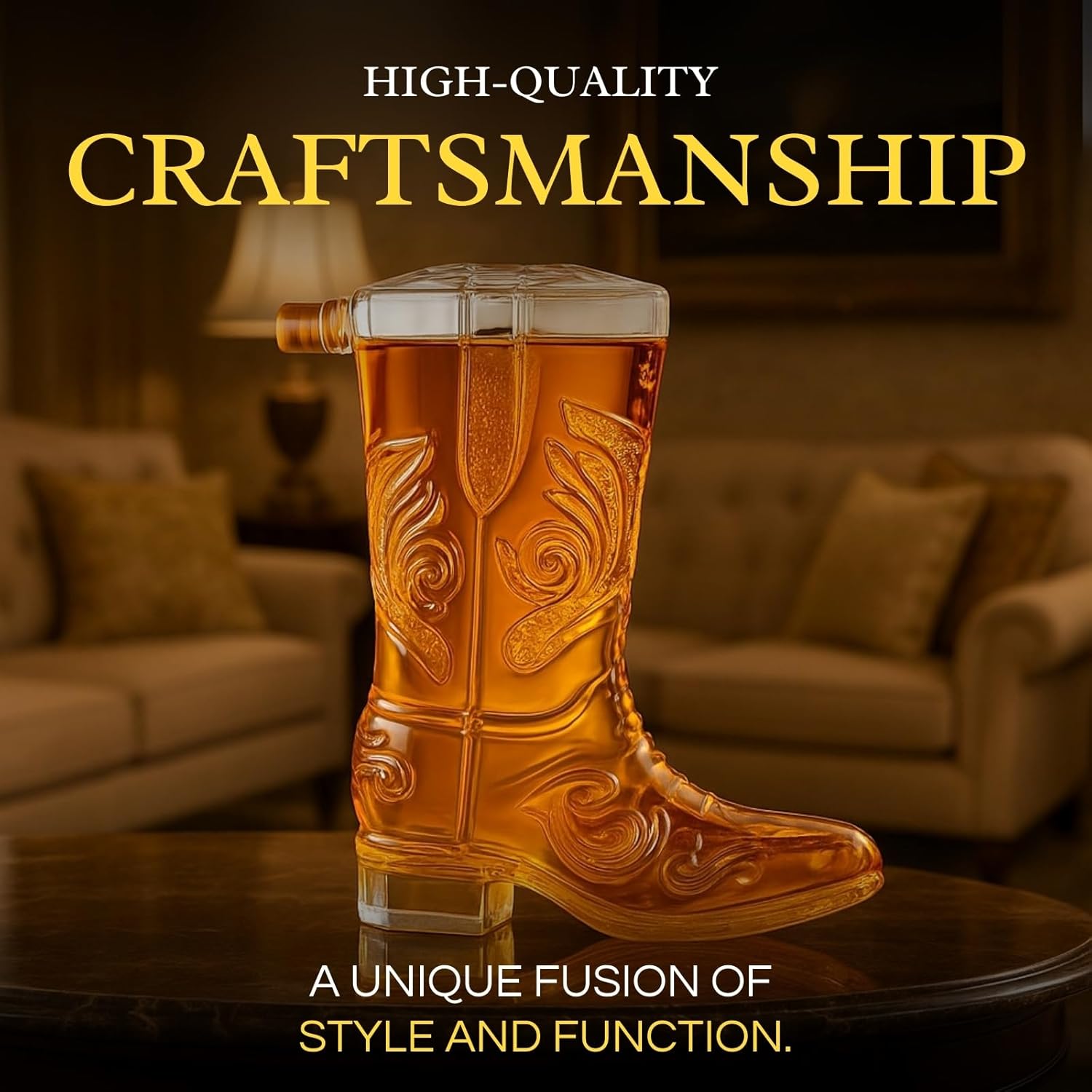Western Cowboy Boot Whiskey Decanter 27oz – Unique Handcrafted Glass Liquor Bottle, Collectible Barware Birthday, Christmas, Gift for Men, Dad, Husband, Bourbon, Tequila, Scotch, Fathers Day, Home Bar