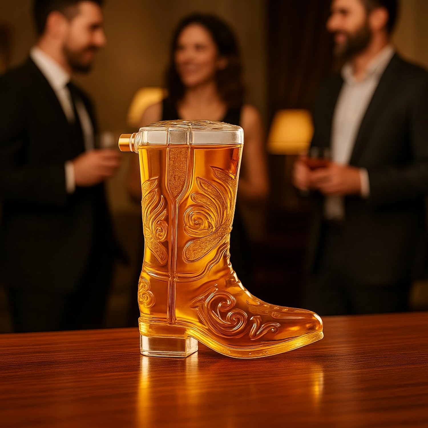 Celebrate Western charm with The Wine Savant Cowboy Boot Decanter — a bold and stylish centerpiece that blends rustic Americana with sophisticated barware. Handcrafted from high-quality glass and shaped like a detailed cowboy boot, this 27.39 oz decanter brings personality and flair to your whiskey, bourbon, tequila, or scotch. Its intricate embossed pattern, clear stopper, and solid base make it a stunning display piece for any home bar, man cave, or western-themed event. Whether you're pouring a glass after a long day or gifting a true whiskey enthusiast, this boot decanter delivers on both style and spirit.